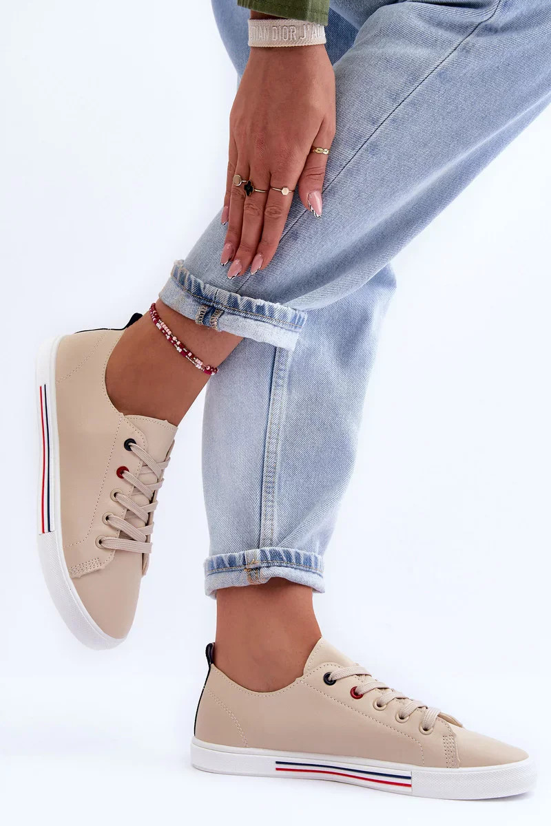 Dámská sportovní obuv s nízkou podrážkou. Klasický šněrovací model. Měkká stélka zajišťuje pohodlné používání obuvi. Zaoblené prsty. Tyto tenisky budou jistě dobře fungovat v mnoha stylech! Při výběru velikosti se řiďte tabulkou velikostí.