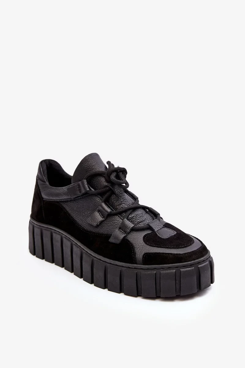 Dámská kožená sportovní obuv na platformě Zazoo Black