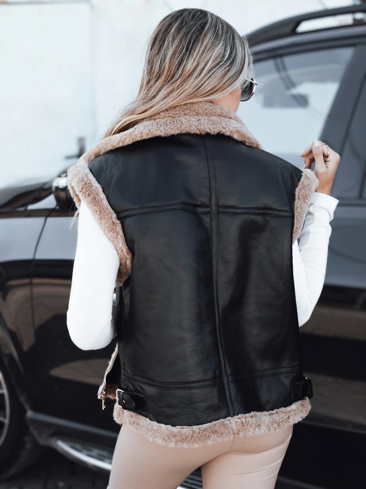 Dámská kožená vesta s ovčí kůží černá FashionStreet TY5251