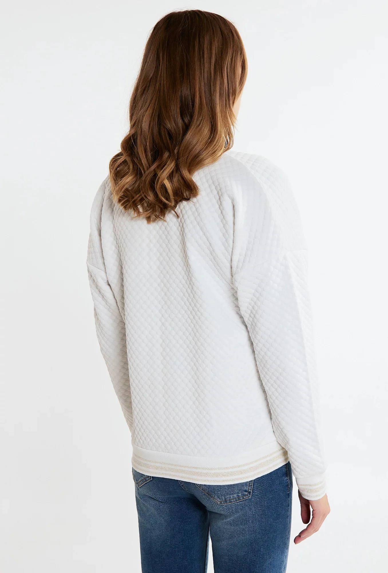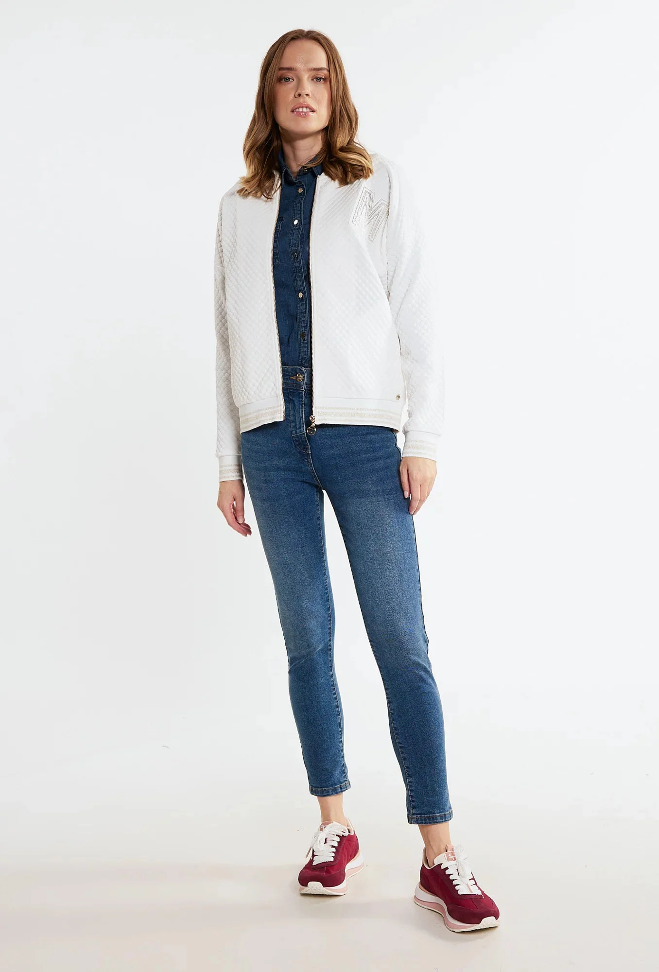Dámská bunda s aplikací v podobě tryskového loga značky Monnari. Bunda s dlouhými rukávy, zapínání na zip. Zapuštěné kapsy na bocích. Tento model se ideálně hodí jako doplněk ke každodenní stylizaci. Modelka na obrázku je vysoká 177 cm a má velikost 36.