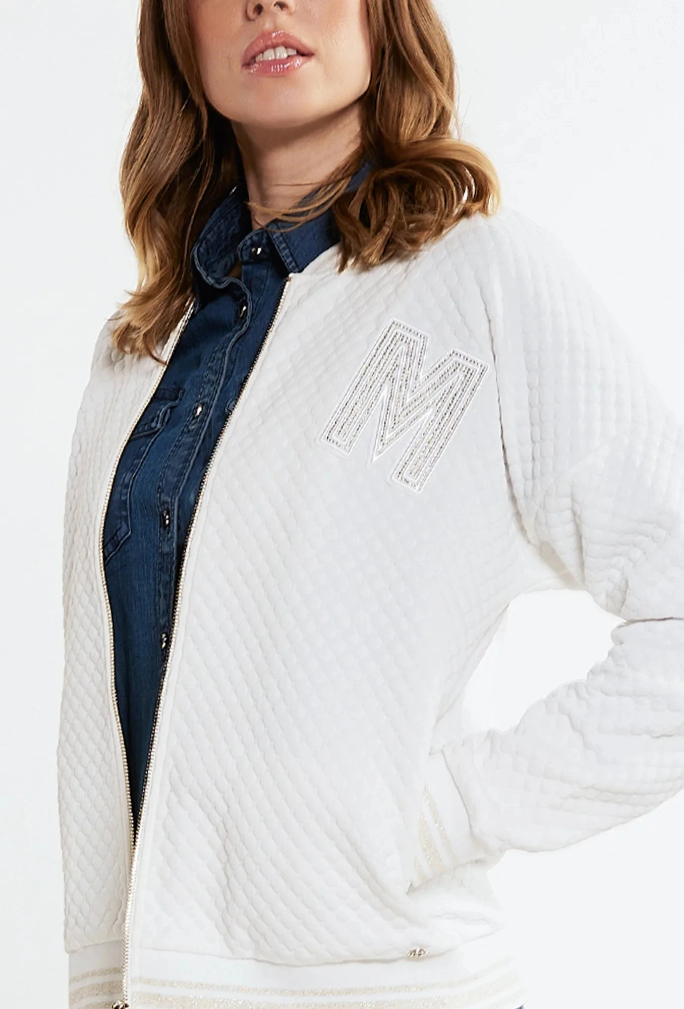 Produkt Dámská krátká bunda s aplikací model 18442899 - Monnari prodáváme v těchto velikostech: 46a barvách bílá5904528288528