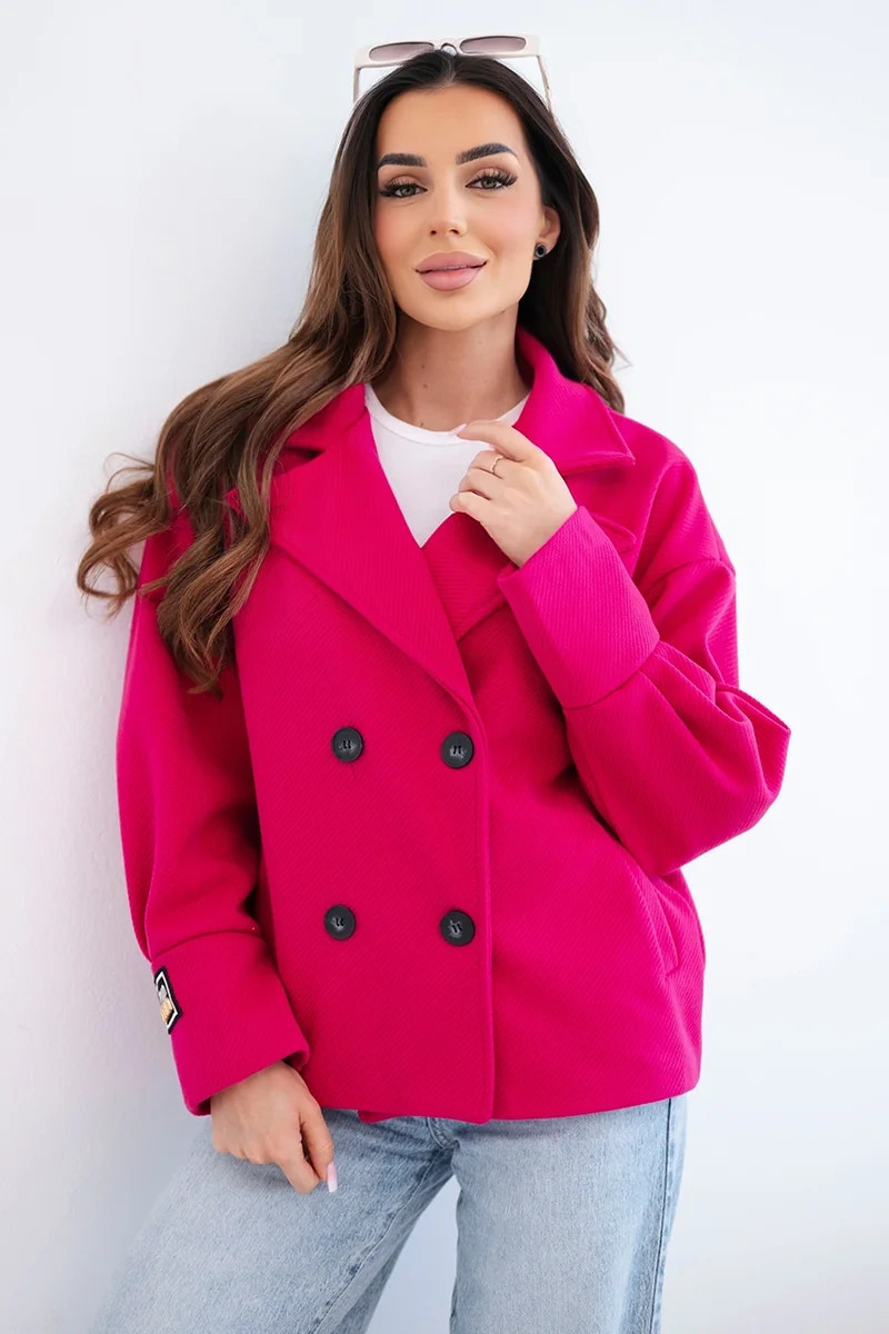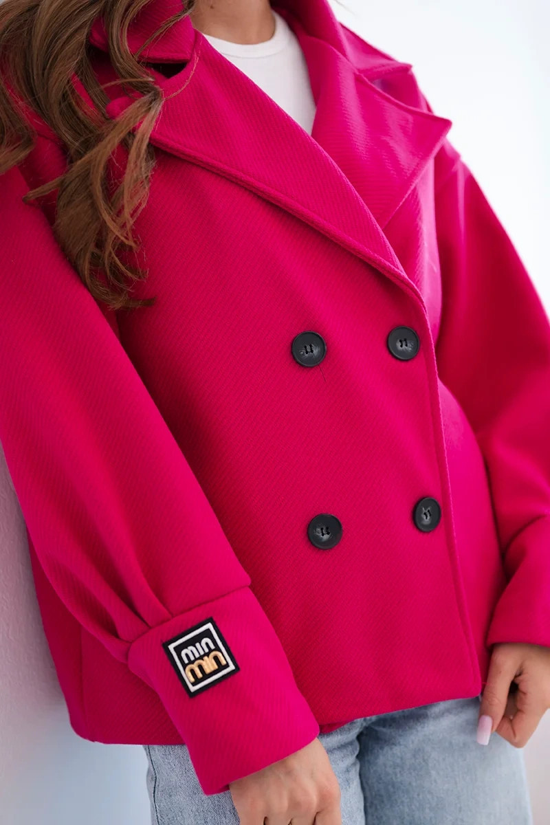 • Dámská krátká dvouřadová bunda s límcem fuchsiová