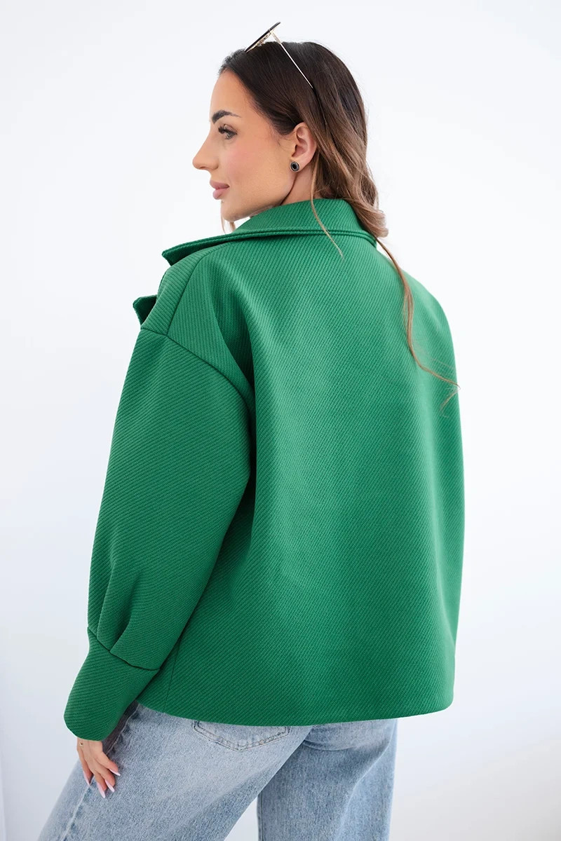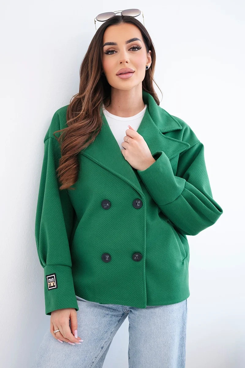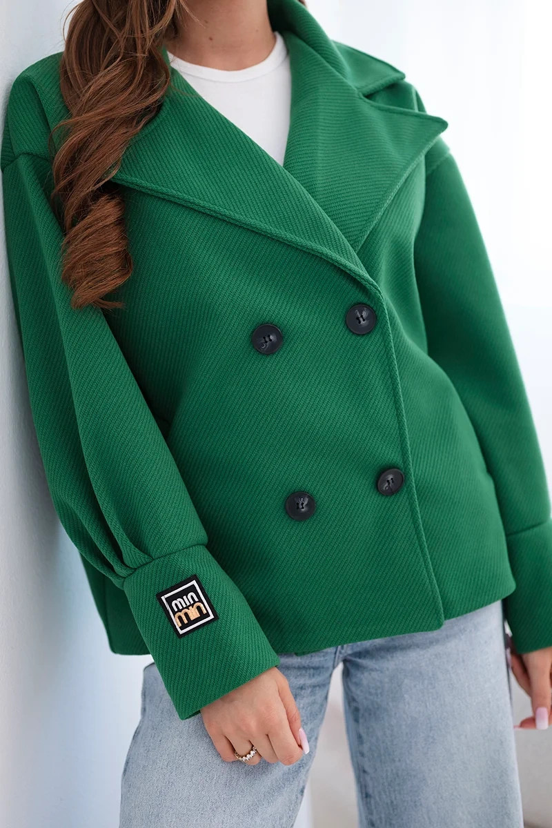 • Dámská krátká dvouřadová bunda s límcem zelená