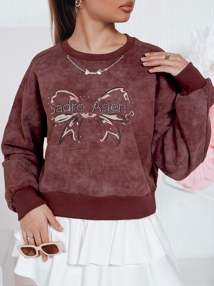 Dámská krátká oversize mikina s kravatovým motivem DENVIS vínová FashionStreet BY1423