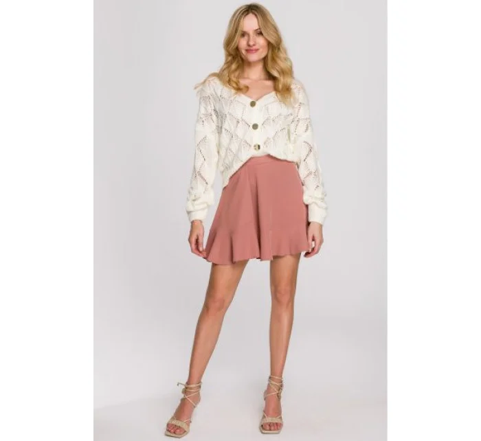 Mini sukně se zajímavým překrytím na přední straně. Jemný volánek na lemu dodává originalitu. Sukně se zapíná na krytý zip. Ideální jako základ pro váš styling, hodí se jak k elegantním verzím se sakem, tak k ležérnějším se svetrem a teniskami.