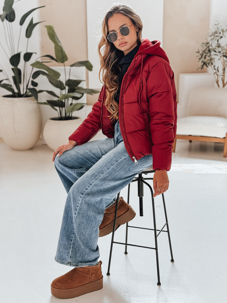 Dámská krátká zimní bunda GLAMVO s kapucí vínová FashionStreet TY4949