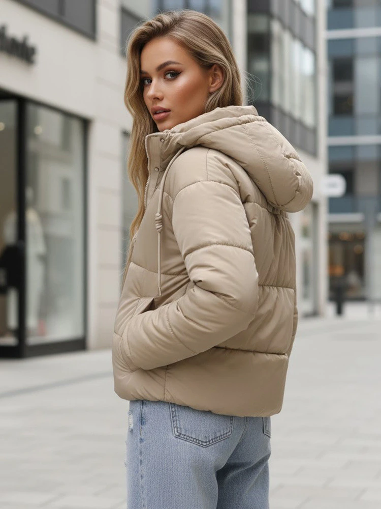 Tato krátká prošívaná zimní bunda sportovního střihu kombinuje lehkost s funkčností. Měkká výplň poskytuje tepelný komfort v chladnějších dnech, zatímco nastavitelná kapuce chrání před větrem a srážkami. Vysoký límec a elastické manžety zlepšují padnutí a snižují tepelné ztráty.