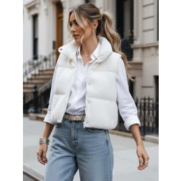 Vesta z ovčí kůže s měkkou texturou doplňuje styling v chladném počasí a poskytuje příjemný pocit zavinutí. Rovný střih umožňuje snadnou kombinaci s košilemi, halenkami a lehkými svetry. Vysoký límec upravuje postavu a chrání krk před chladem. Model je ideální pro každodenní outfity s městským charakterem.