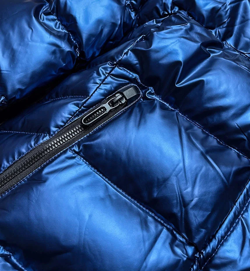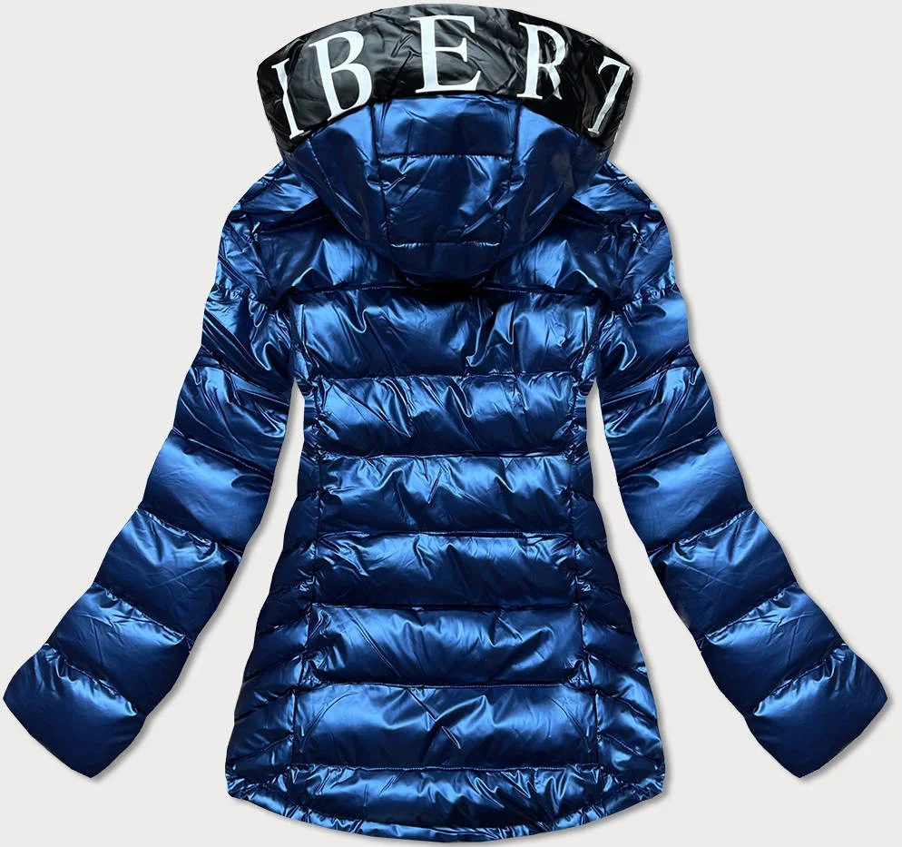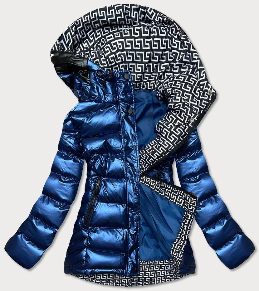 DAMSKA KURTKA PIKOWANA Z KAPTUREM NIEBIESKI CIEMNY/BIAŁY (XW817X)