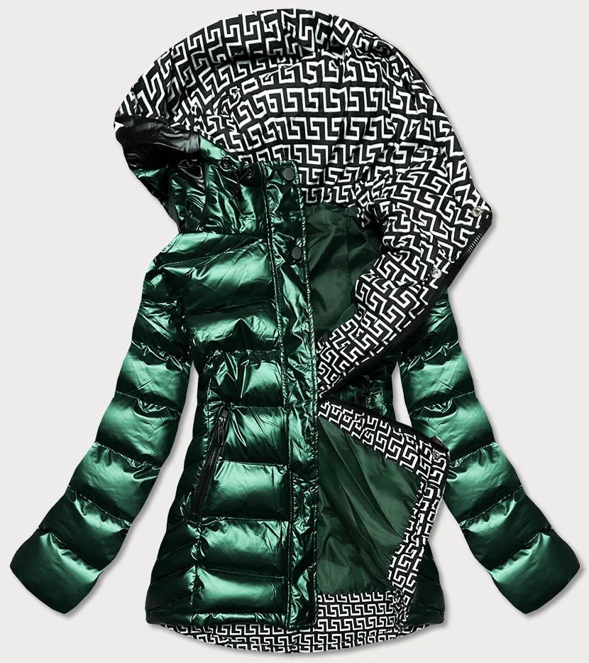 DAMSKA KURTKA PIKOWANA Z KAPTUREM ZIELONA (XW817X)