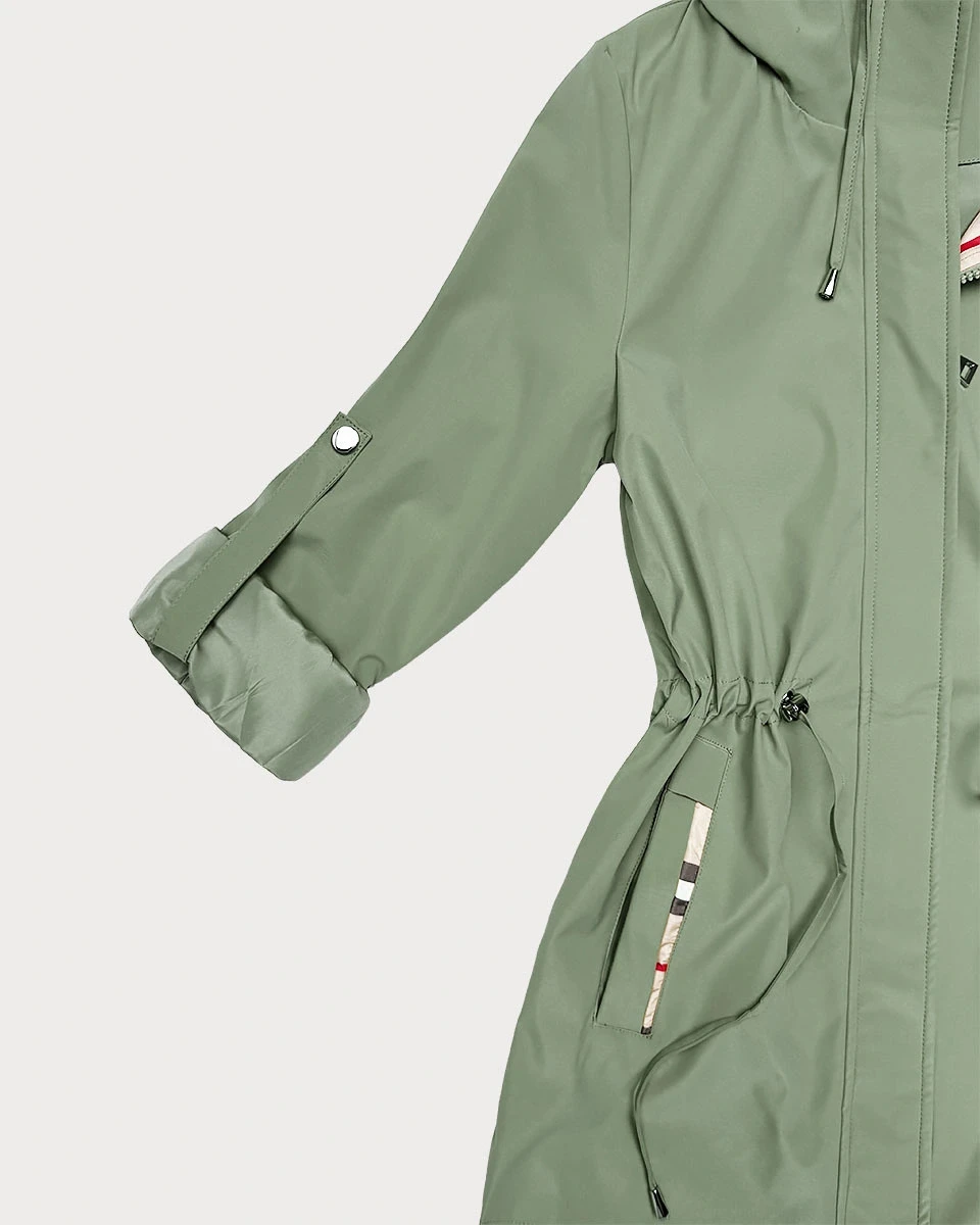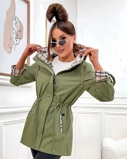 Damska kurtka z wykończeniem w kratkę Goodlookin khaki (KK60411-3#)