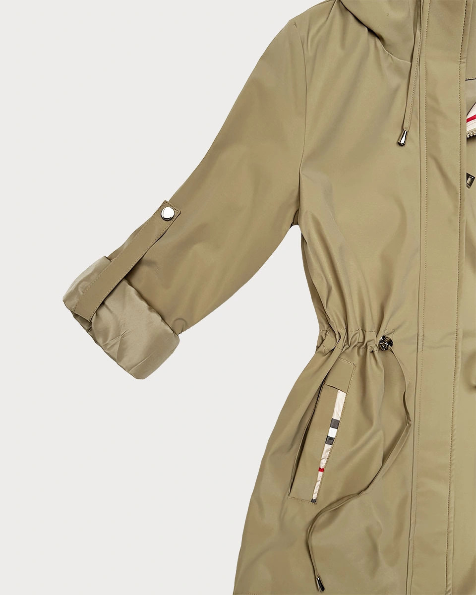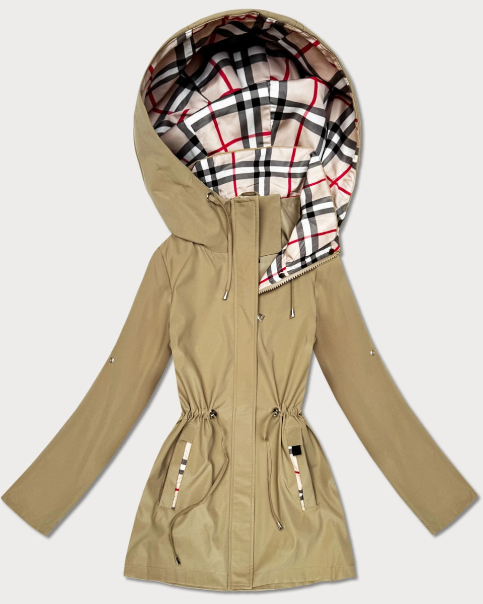 Damska kurtka z wykończeniem w kratkę Goodlookin piaskowa (KK60411-4#)