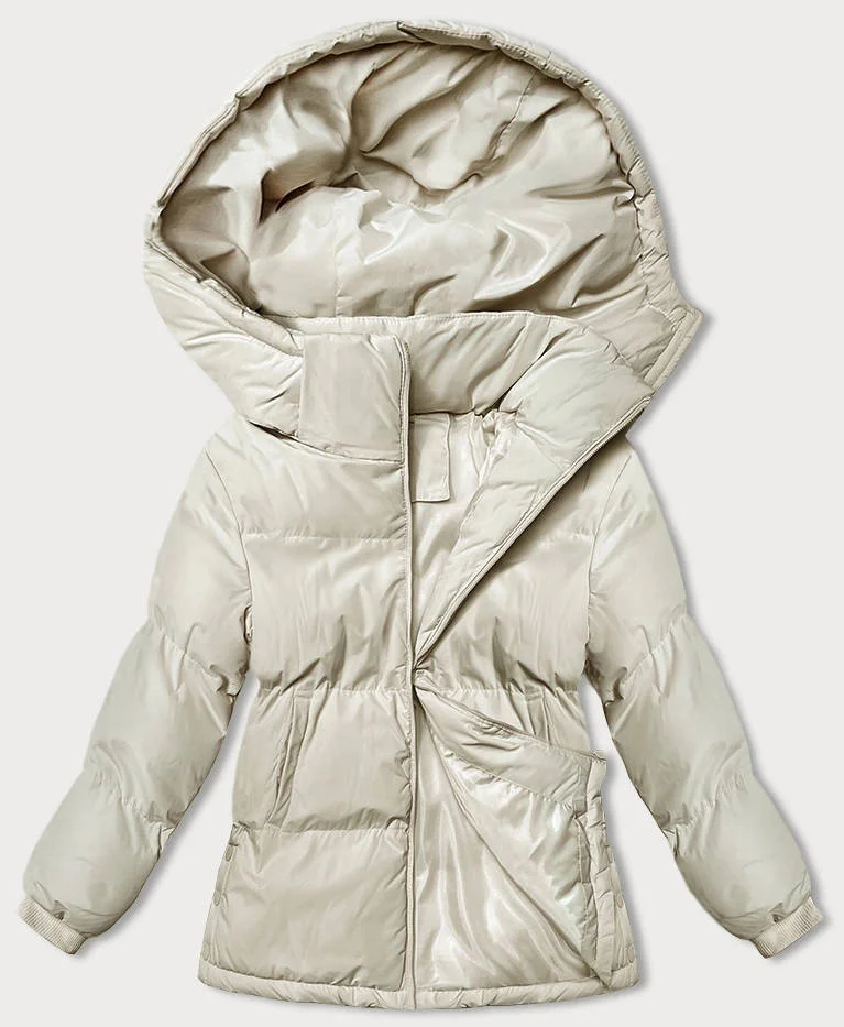 DAMSKA KURTKA ZIMOWA Z KAPTUREM JASNY BEŻ (5M3169-62)
