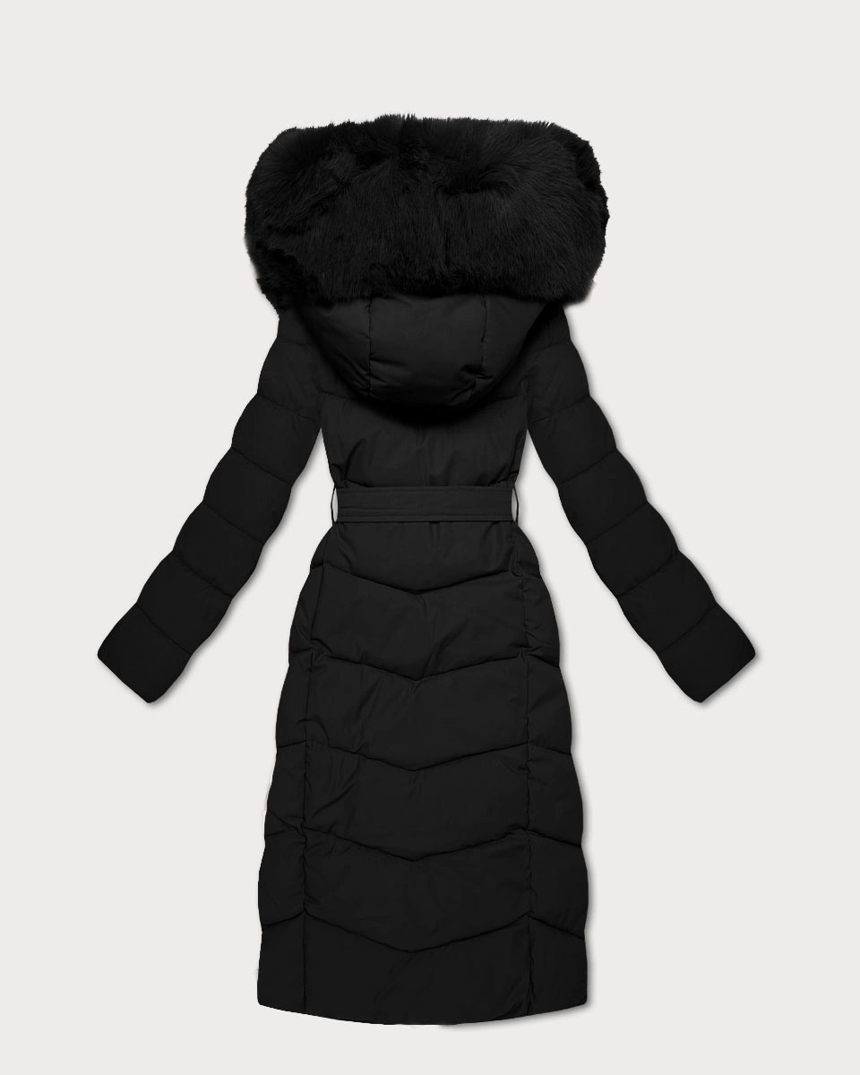 - Odpinany futrzany panel wokół kaptura i wzdłuż zamka