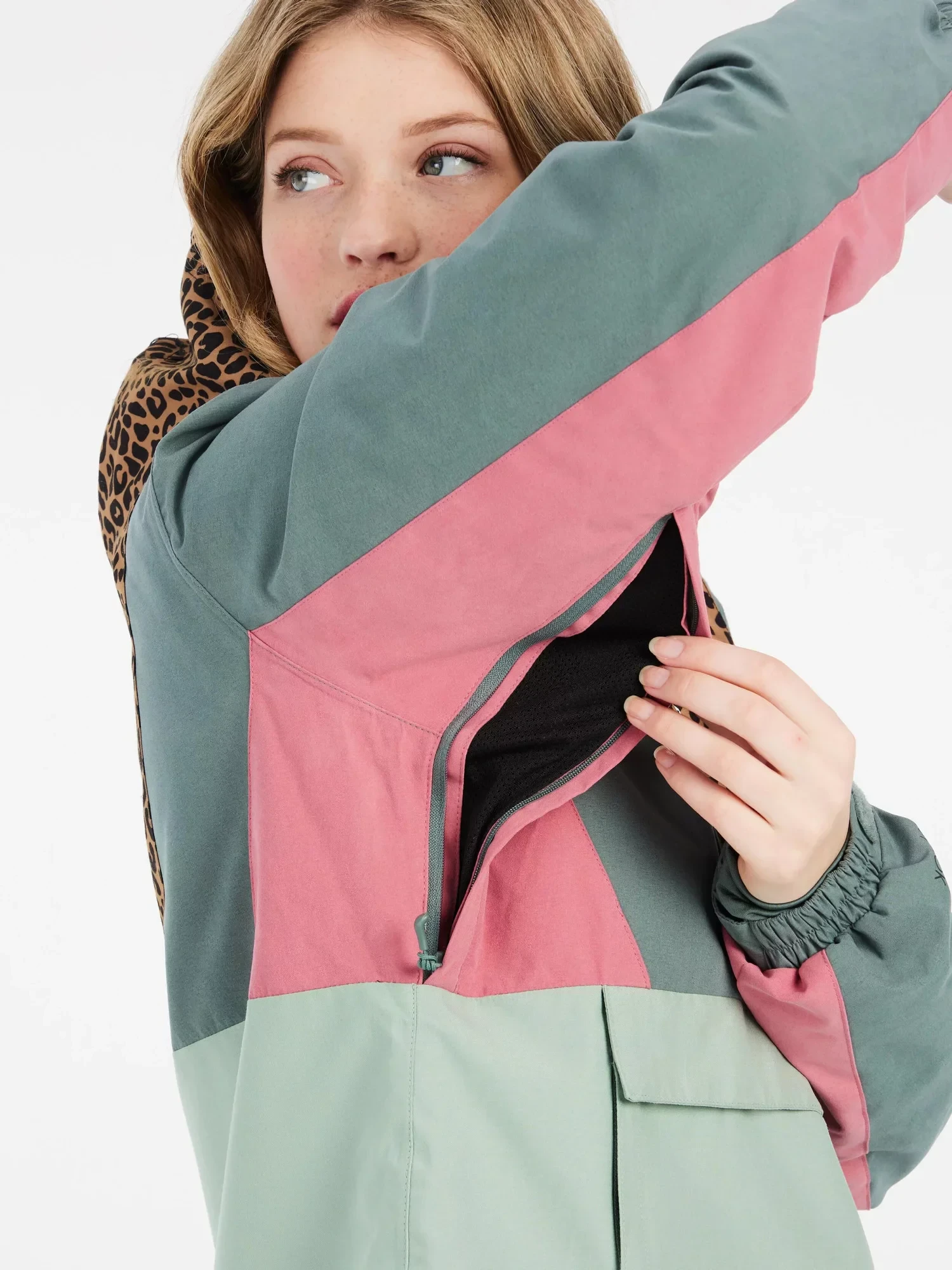 Otvor na palec na vnitřních manžetách je praktický, stejně jako kapsa na skipas a sněhový pás.