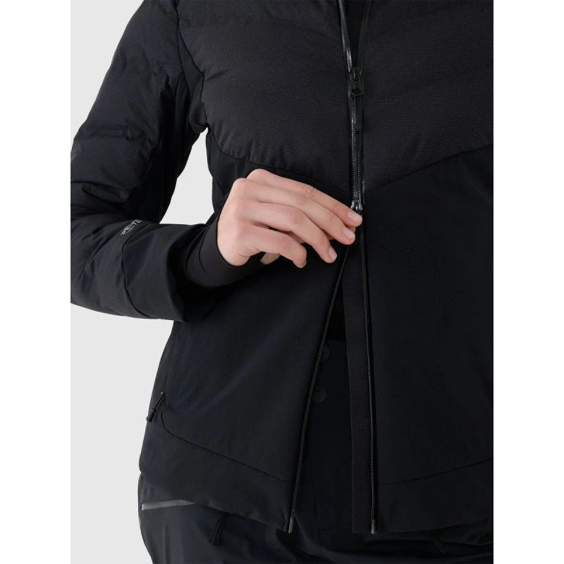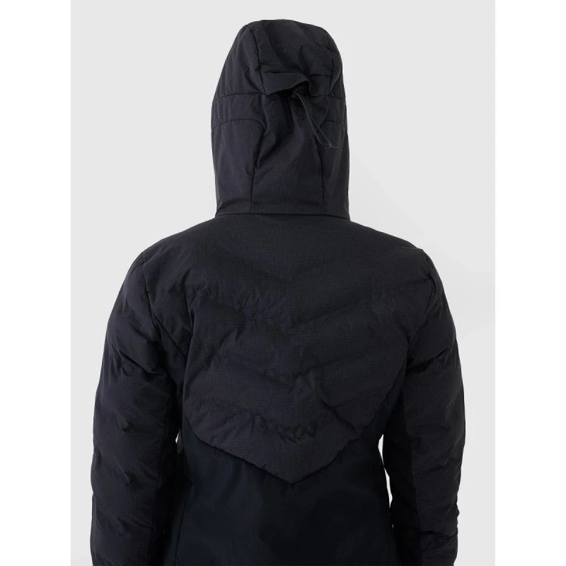 dámská lyžařská bunda s kapucí je určena pro dlouhé hodiny na sjezdovce v náročných zimních podmínkách a díky velkému objemu, robustním materiálům a pokročilým technologiím poskytuje účinnou ochranu před nízkými teplotami, větrem a vlhkostí a zároveň zajišťuje tepelný komfort během intenzivní aktivity.