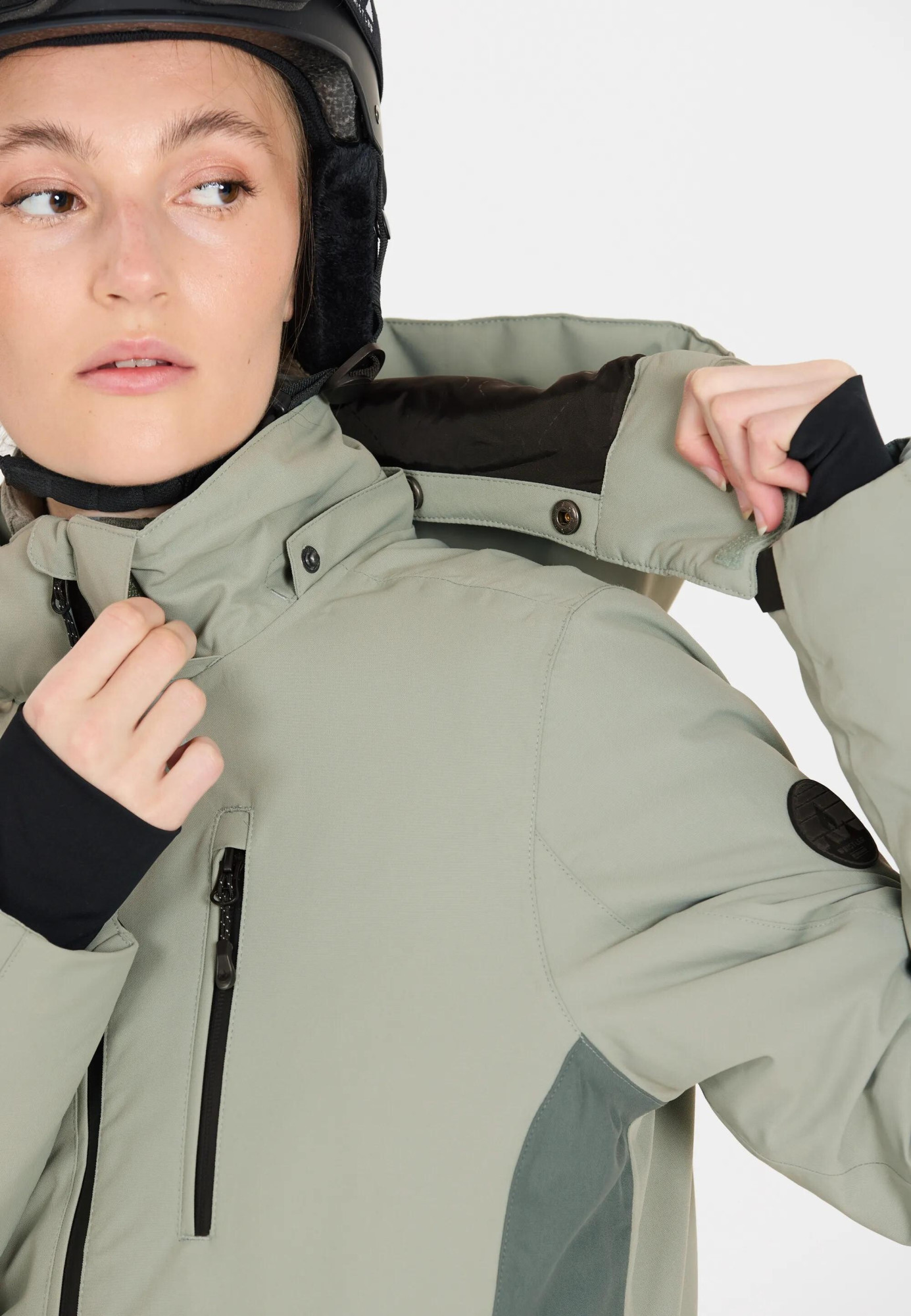 Spodní lem bundy lze rovněž upravit podle potřeby.