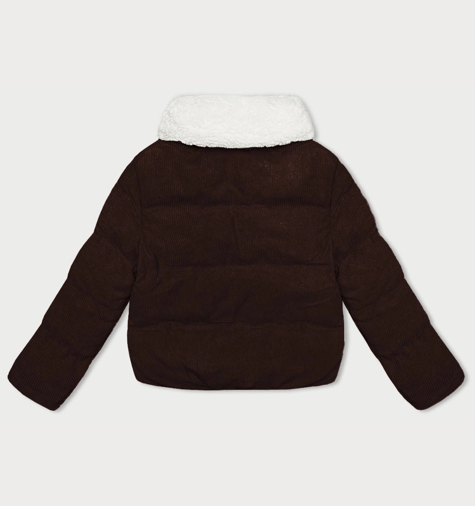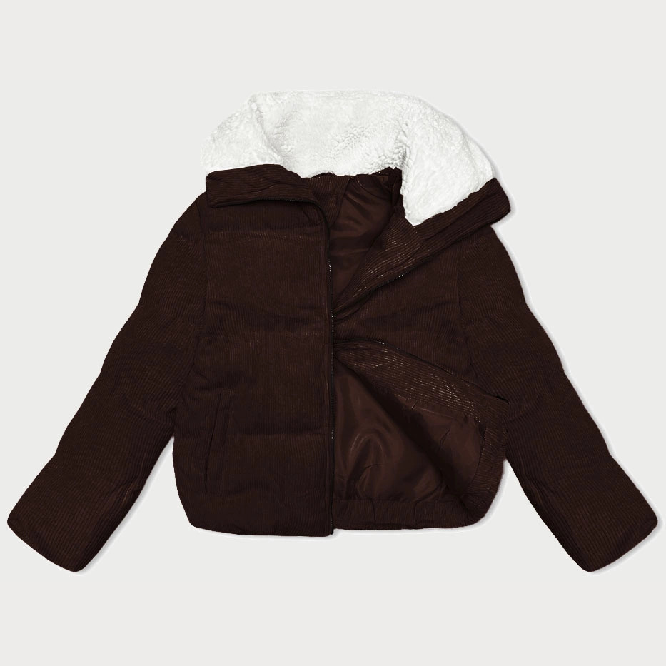 Dámská manšestrová bunda v čokoládové barvě s vysokým stojáčkem J Style (5M3230-158)