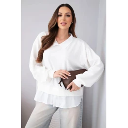 Dámská máslová mikina z viskózy s košilovou vsadkou bílá