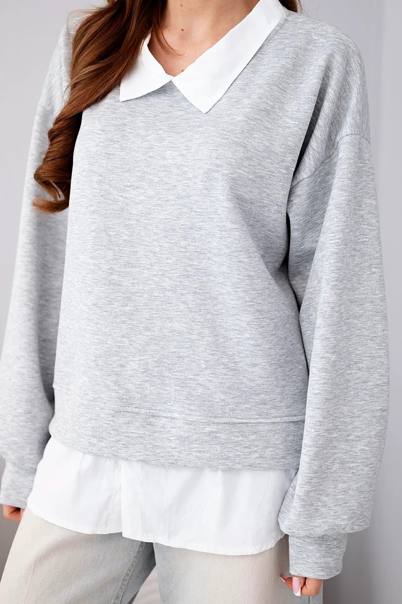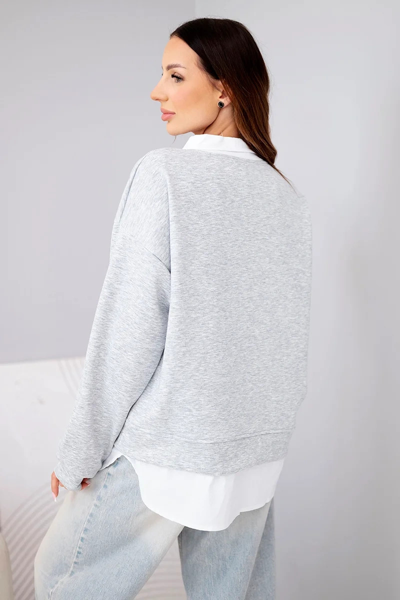 Dámská máslová mikina z viskózy s košilovou vsadkou šedá