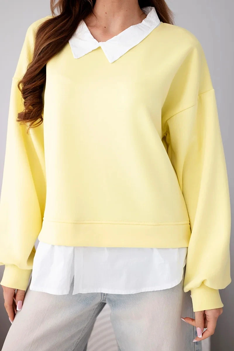 Dámská máslová mikina z viskózy s model 22014147 vsadkou žlutá - K-Fashion