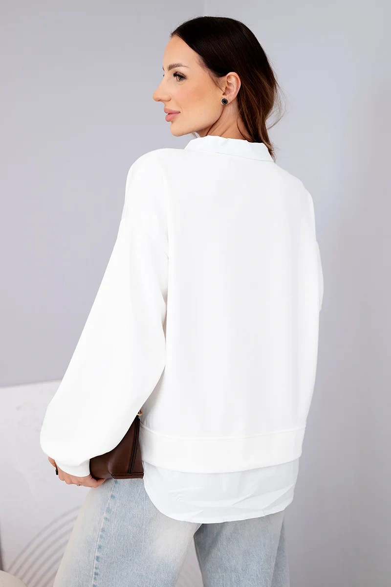 Dámská máslová mikina z viskózy s model 22014151 vsadkou bílá - K-Fashion