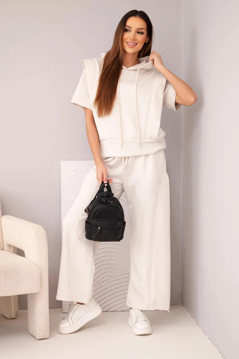 Dámská máslová souprava mikina s kapucí a volné kalhoty se šňůrkou béžový