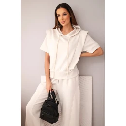 Dámská máslová souprava mikina s kapucí a volné kalhoty se šňůrkou béžový