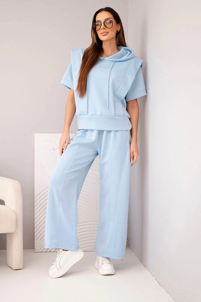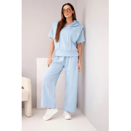 Dámská máslová souprava mikina s kapucí a volné kalhoty se šňůrkou modrá