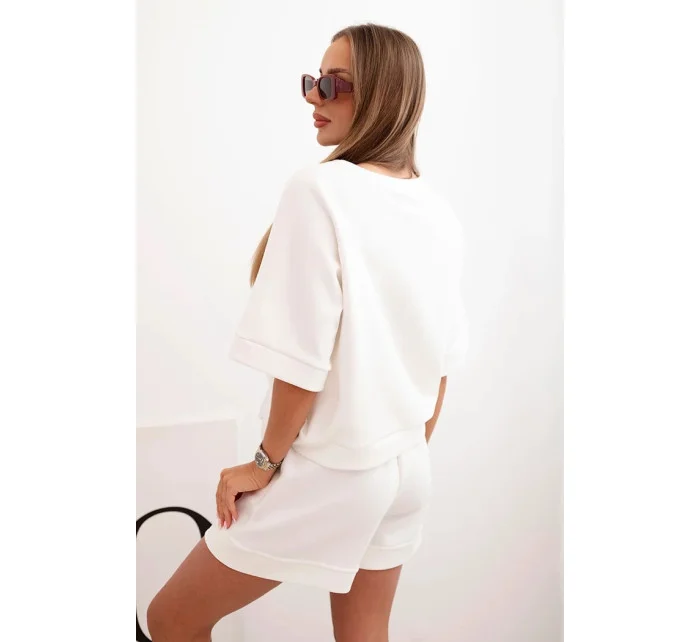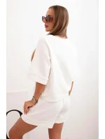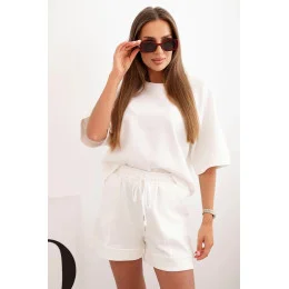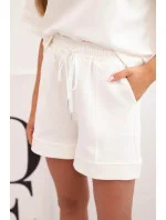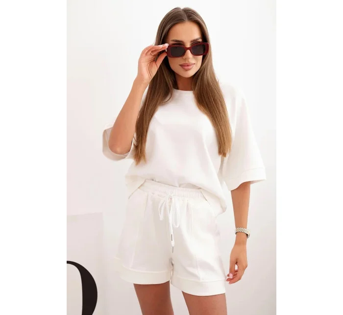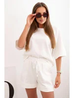 Dámská máslová souprava s halenkou s krátkým rukávem a šortkami s gumičkou ecru