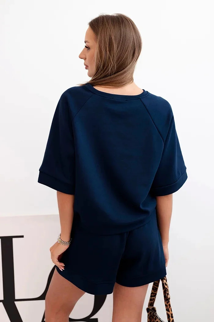 Dámská máslová souprava s halenkou s krátkým rukávem a šortkami s gumičkou námořnická modř