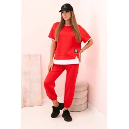 Dámská máslová souprava s krátkým rukávem a kalhotami červený