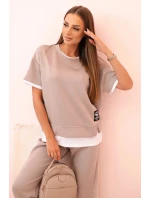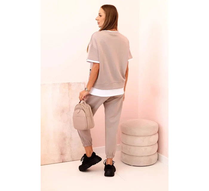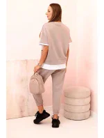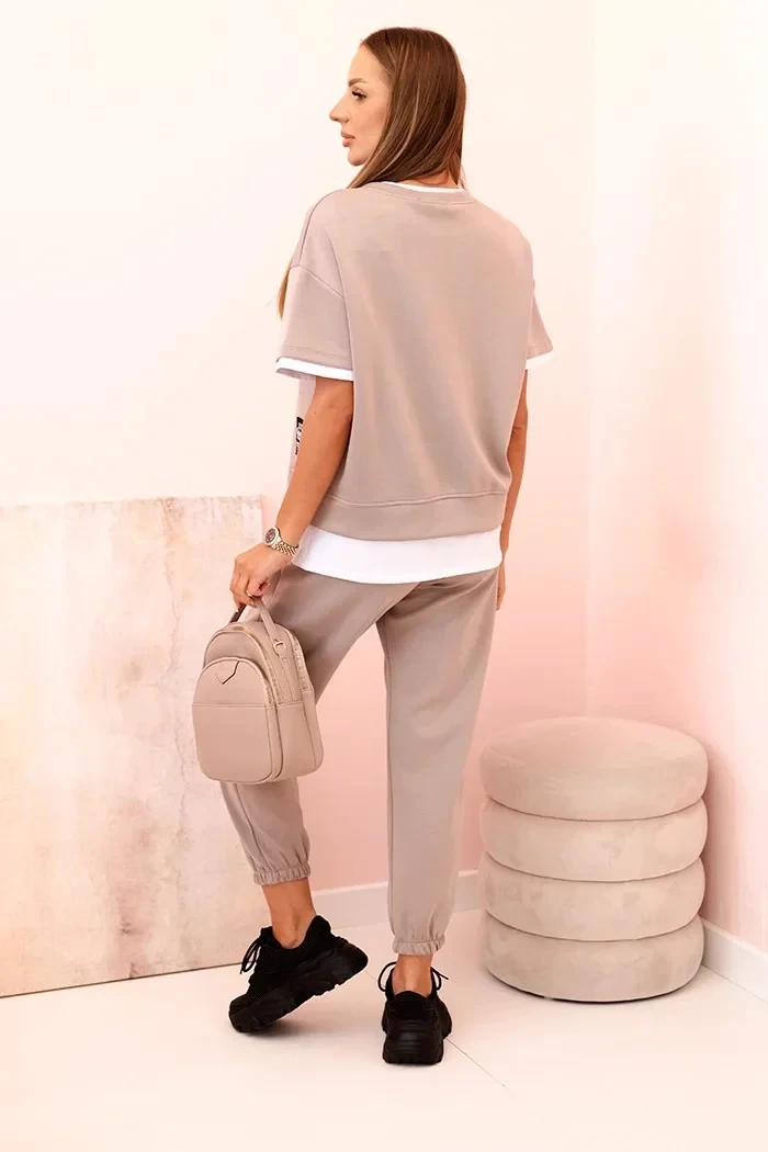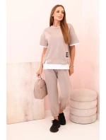 Dámská máslová souprava s krátkým rukávem a kalhotami tmavě béžová