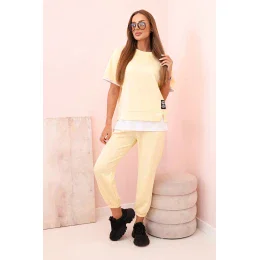 Dámská máslová souprava s krátkým rukávem a kalhotami žlutý