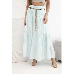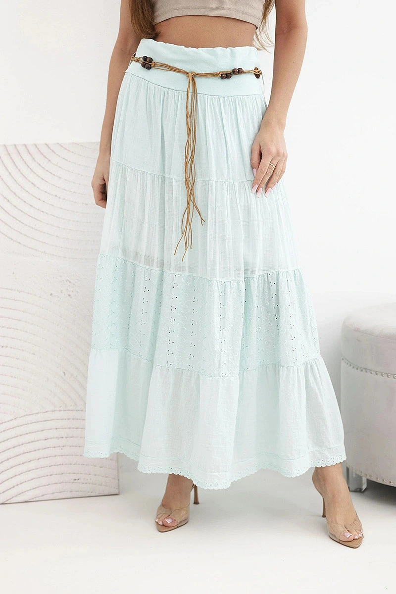 Dámská maxi bavlněná sukně s ažurovým vyšíváním a elastickým pasem mátová