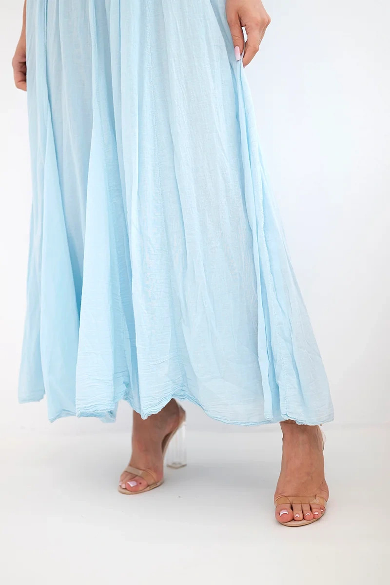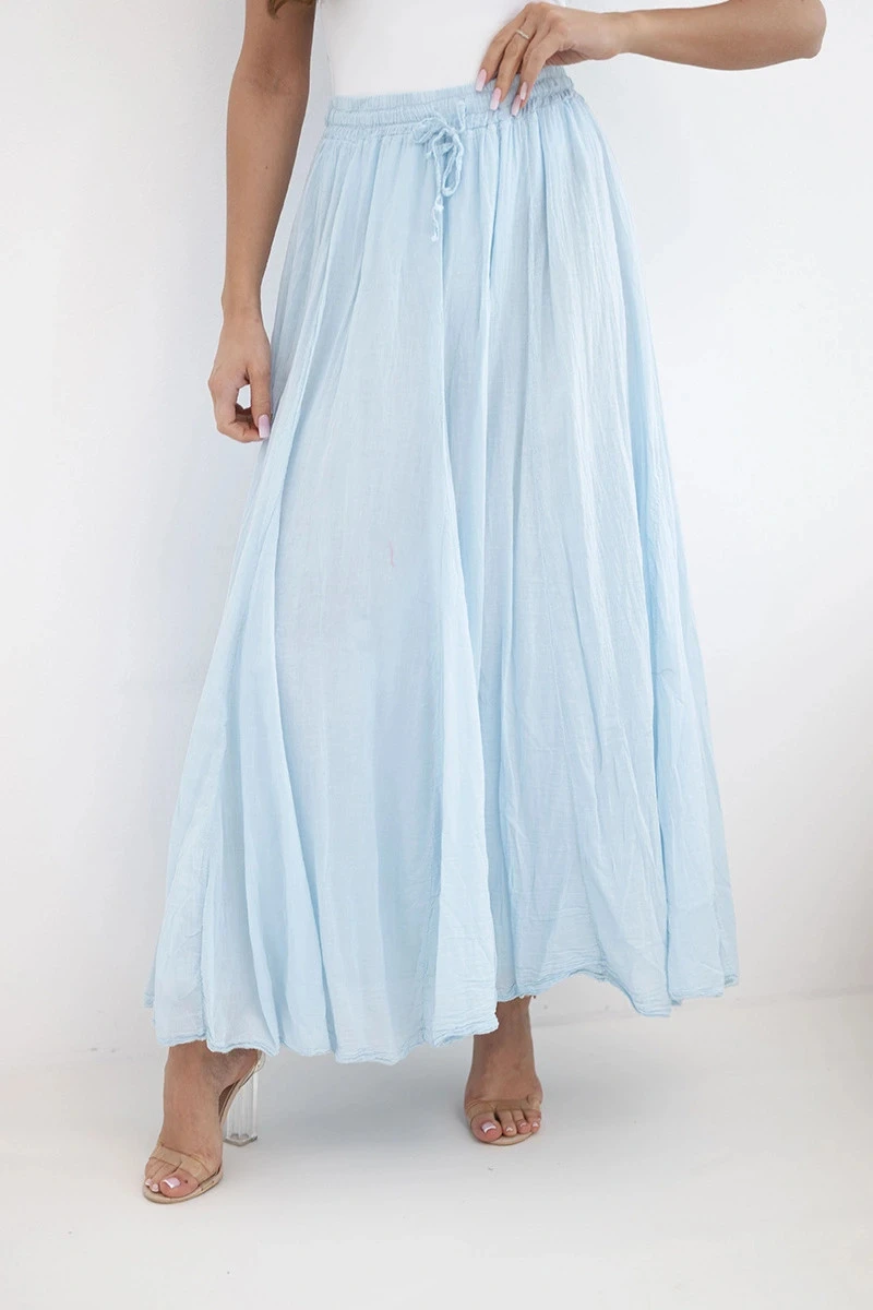 Dámská maxi bavlněná sukně s gumičkou v pase modrá