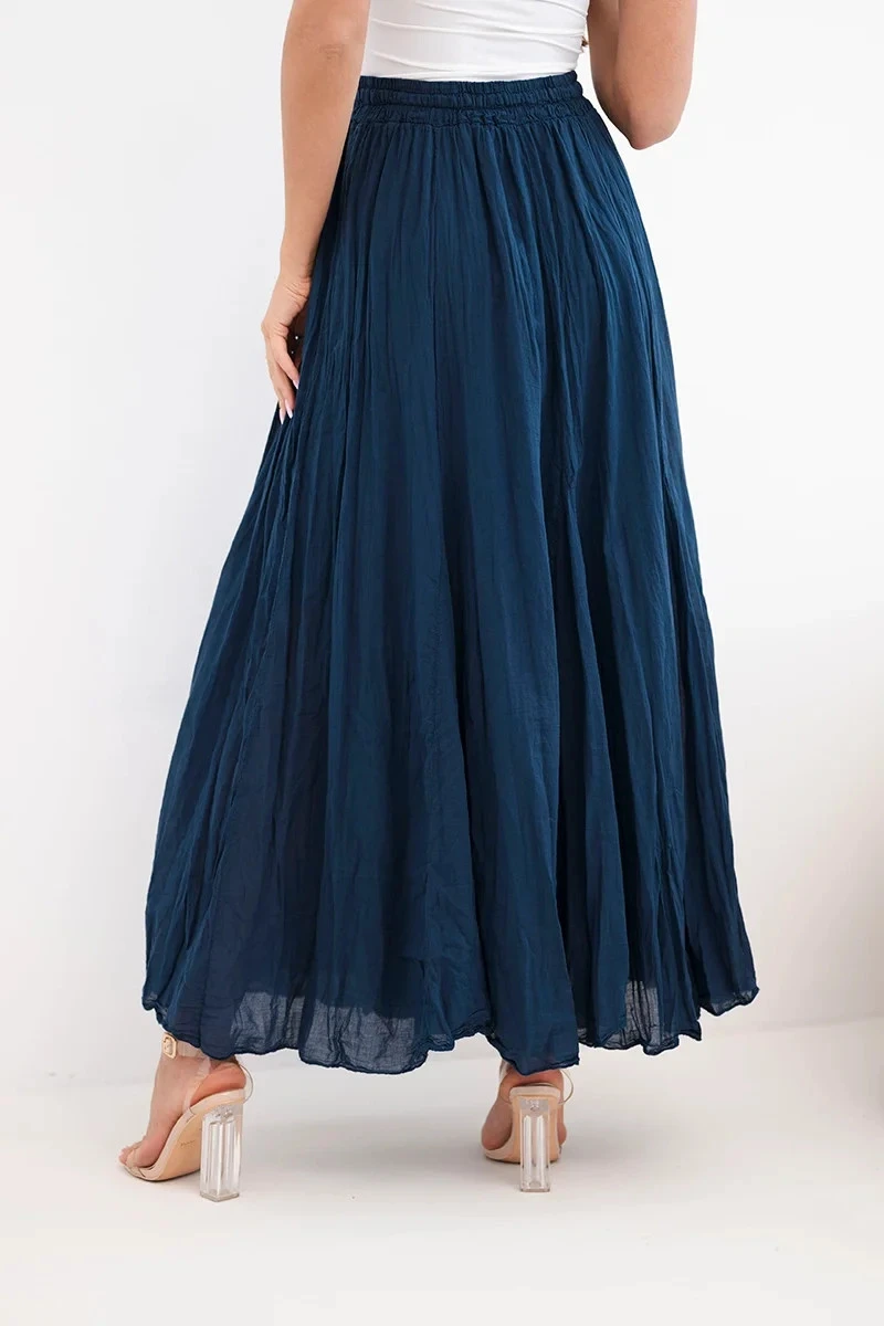Dámská maxi bavlněná sukně s gumičkou v pase námořnická modrá