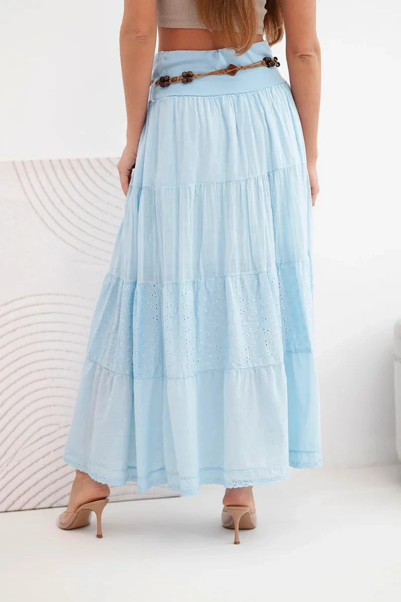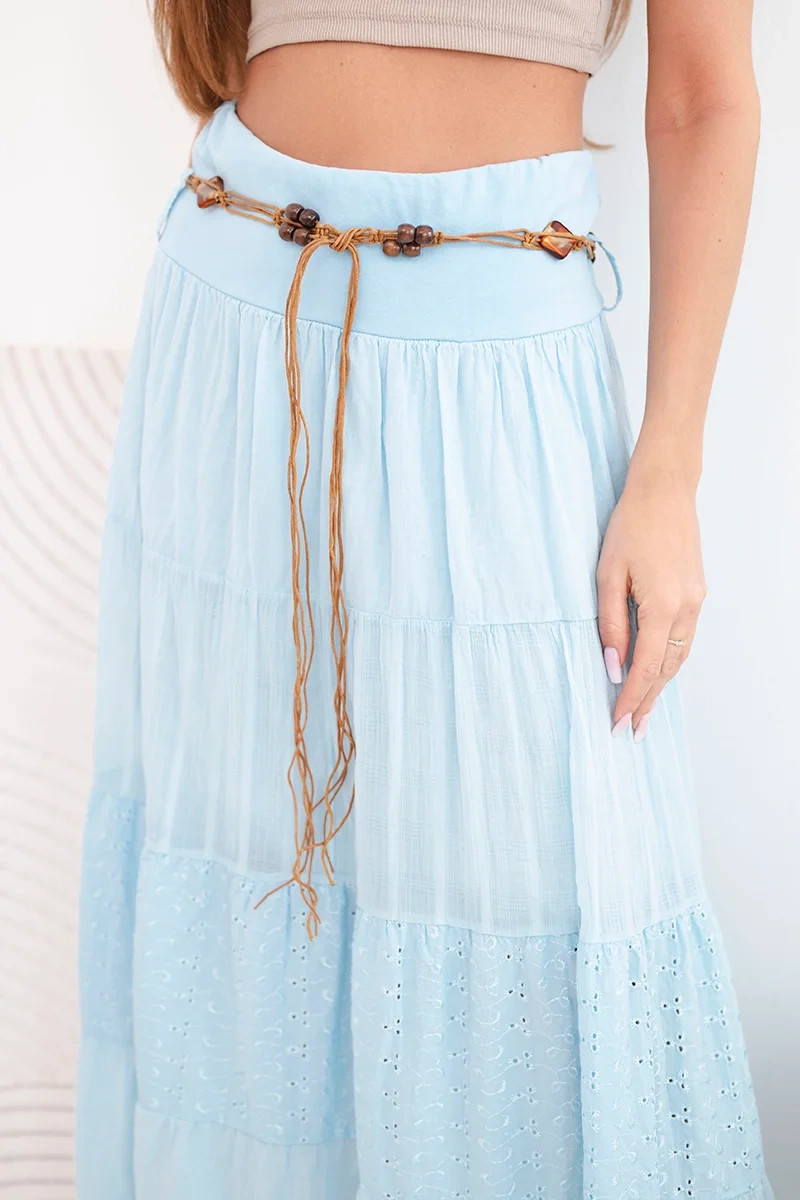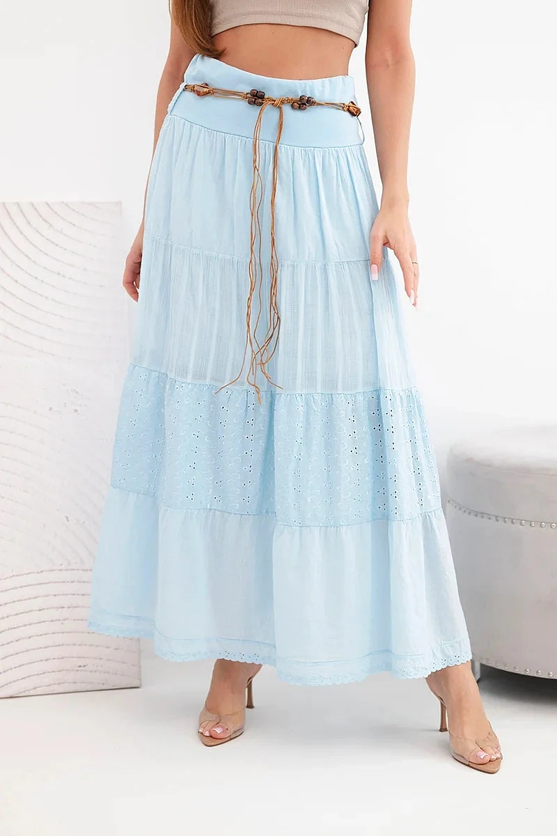 Dámská maxi bavlněná sukně s model 22048761 výšivkou a elastickým pasem modrá - K-Fashion