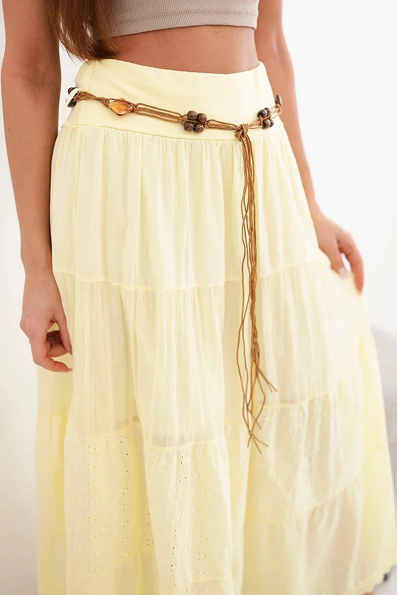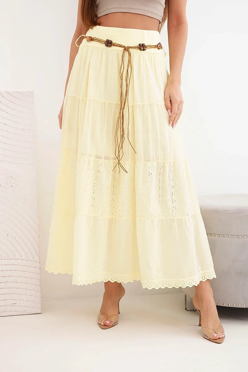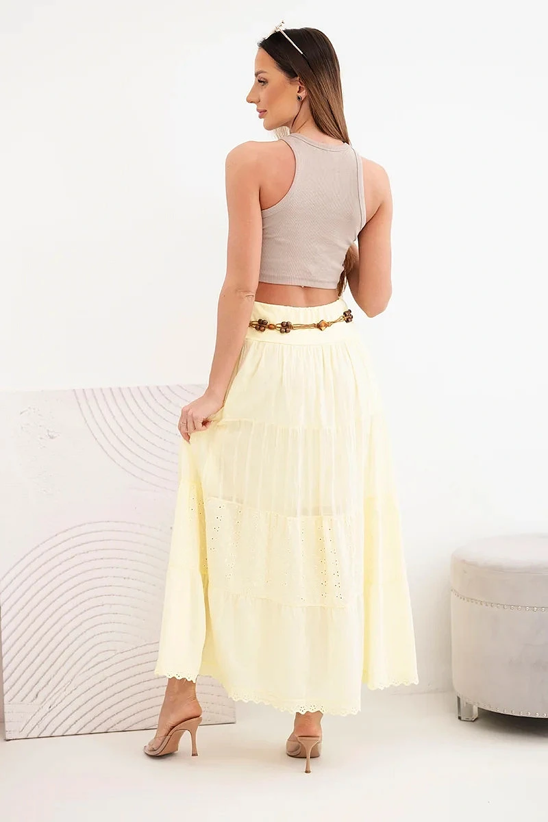 Dámská maxi bavlněná sukně s model 22048765 výšivkou a elastickým pásem žlutá - K-Fashion