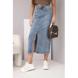 Dámská midi džínová sukně s rozparkem vpředu džínová