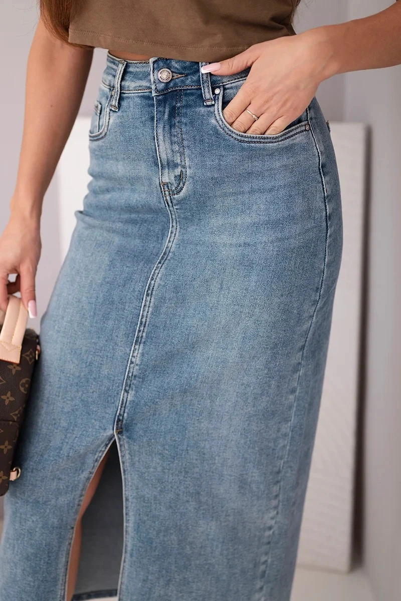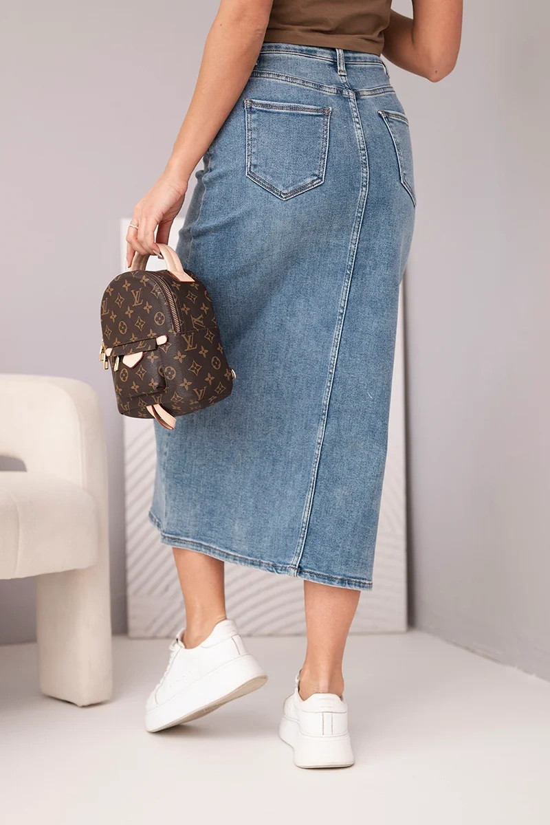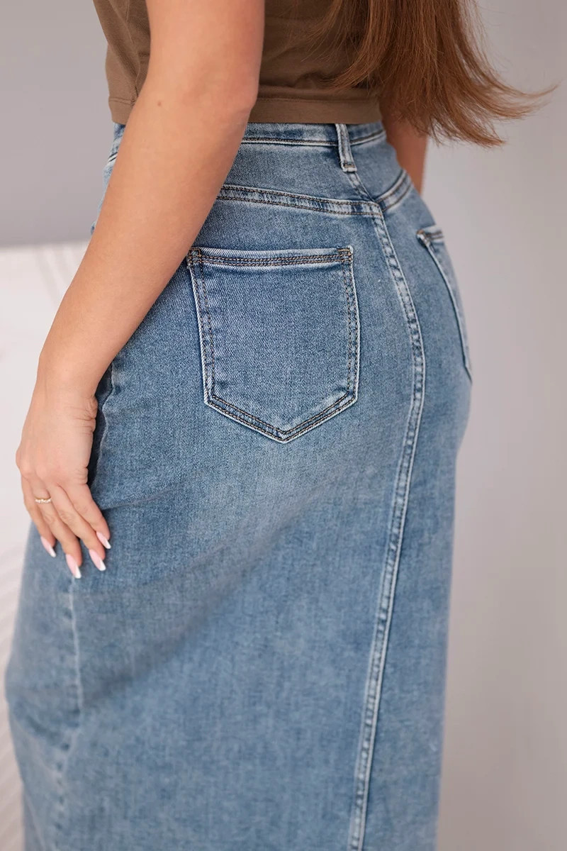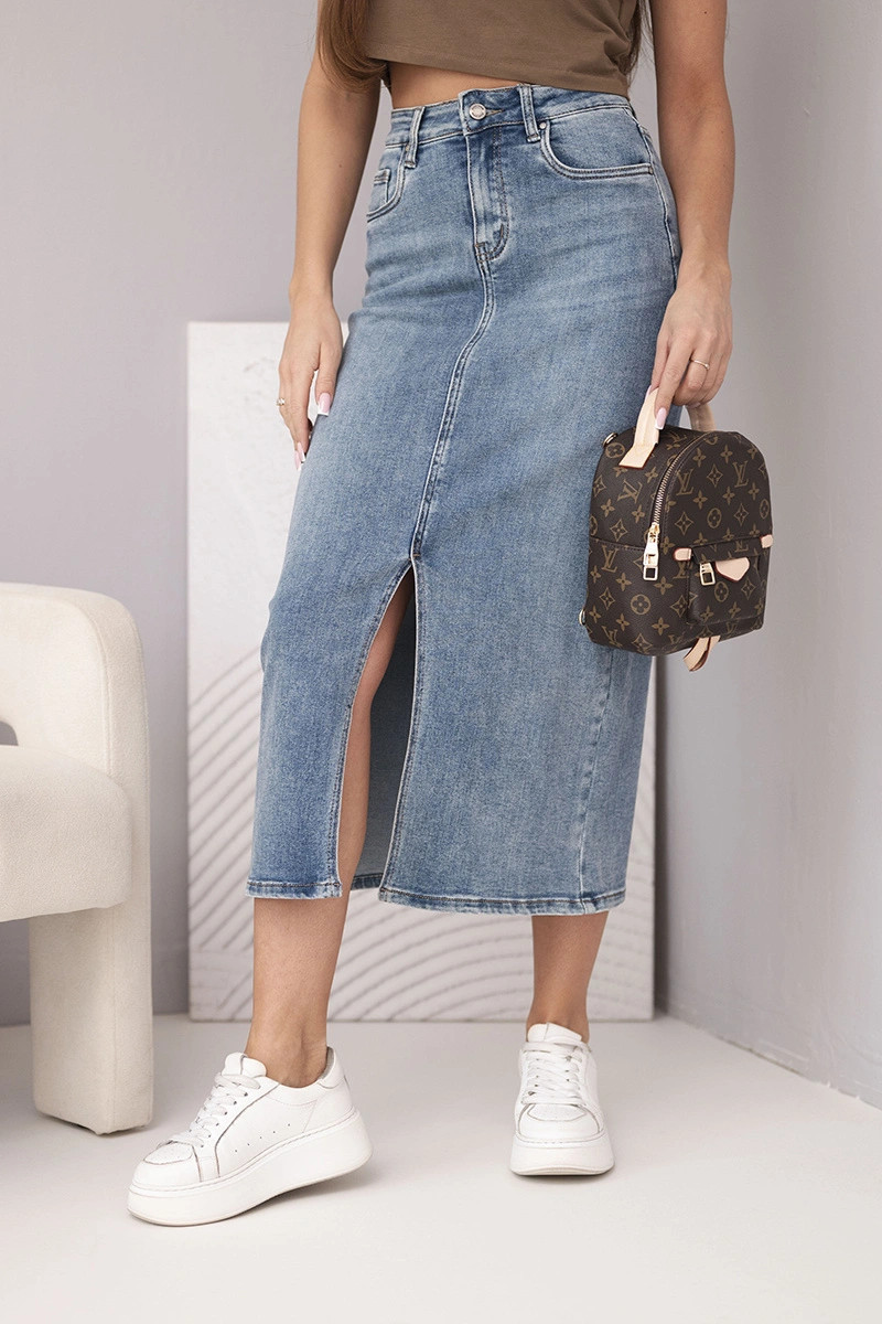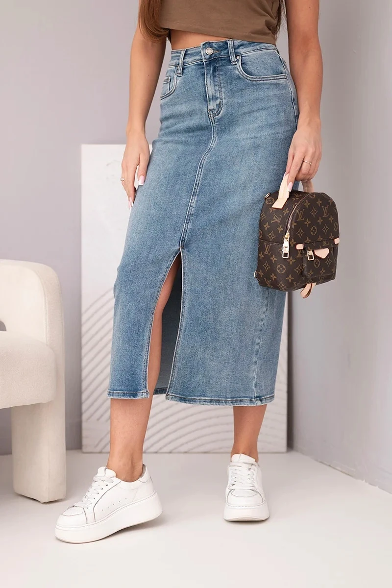 Dámská midi džínová sukně s rozparkem vpředu džínová