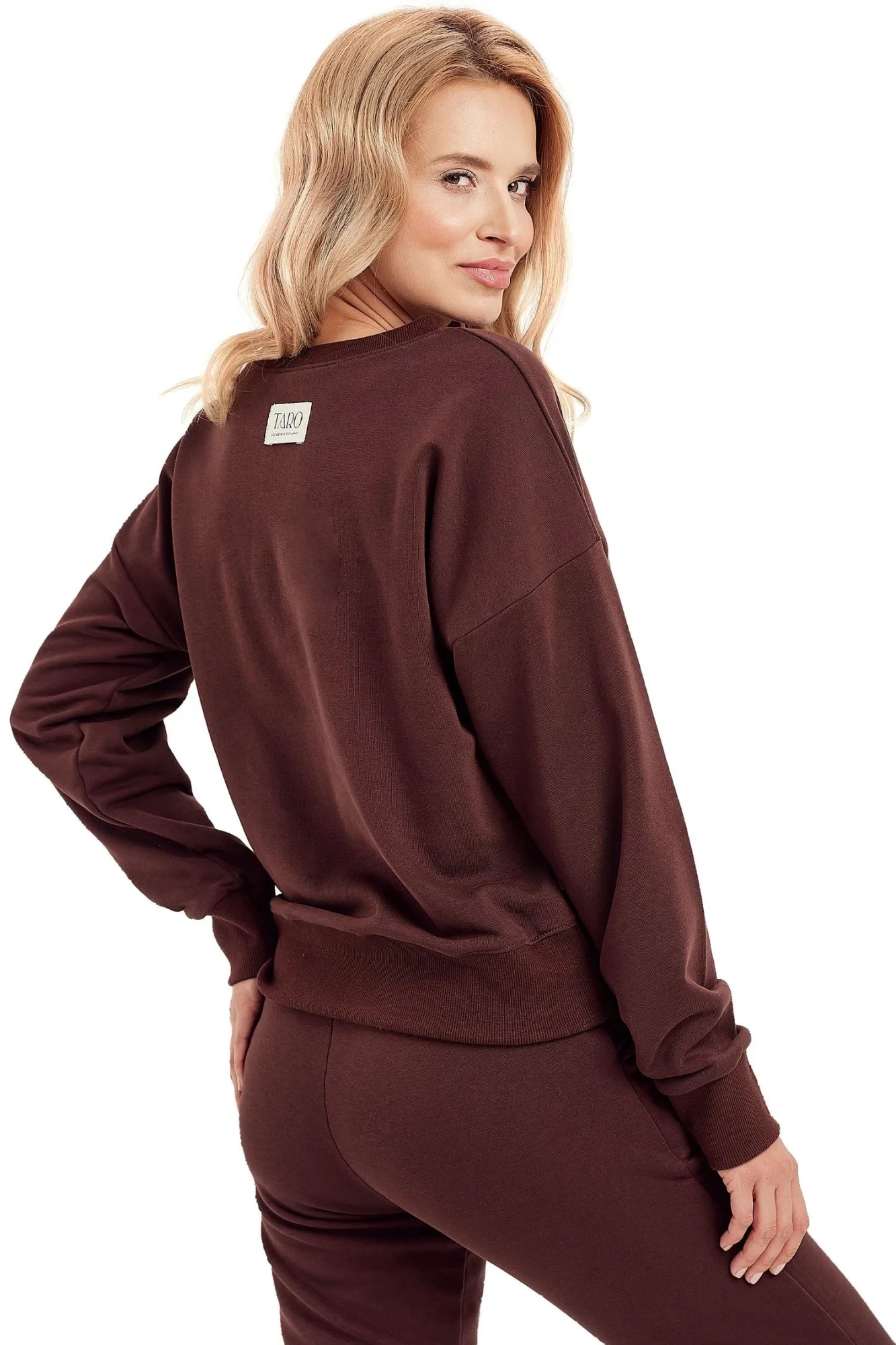 Dámská mikina 3024 Selena TARO - vyrobené z vysoce kvalitní a měkké bavlny - mikina je hnědé barvy s dlouhými rukávy - půlkulatý výstřih - přední strana ozdobená potiskemMateriálové složení: 90% bavlna + 10% polyester