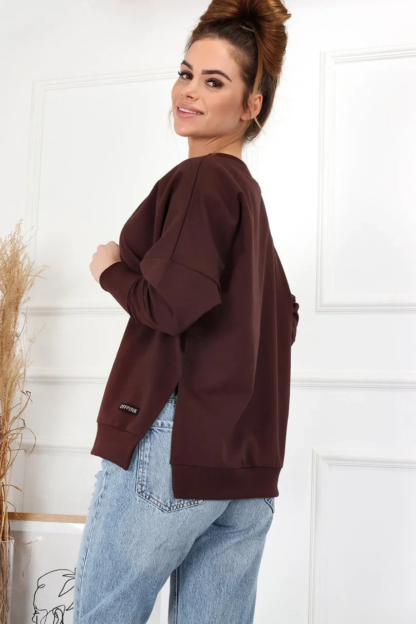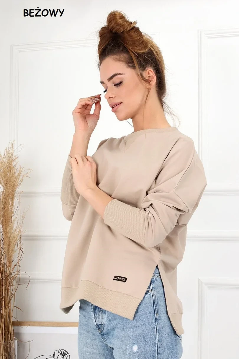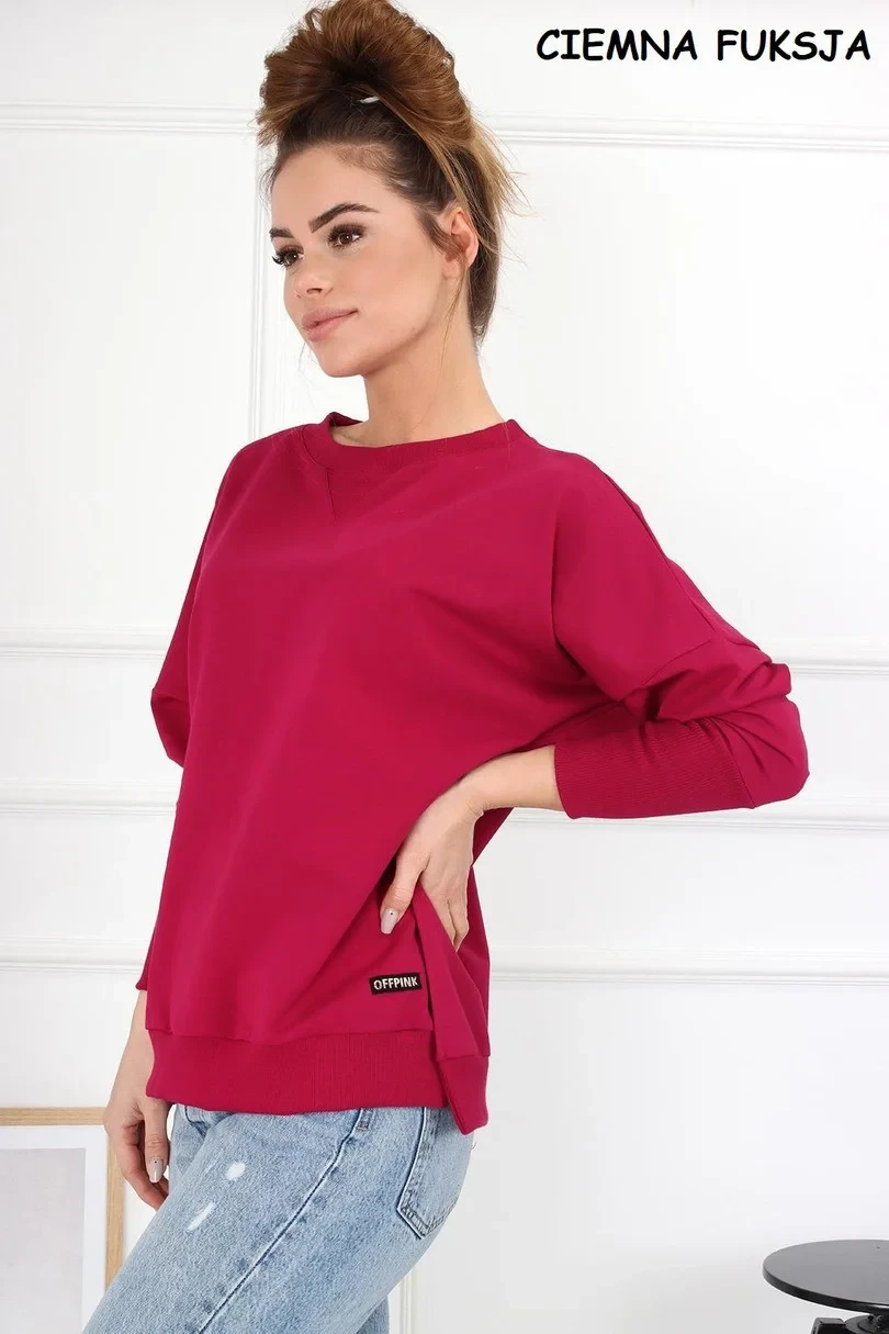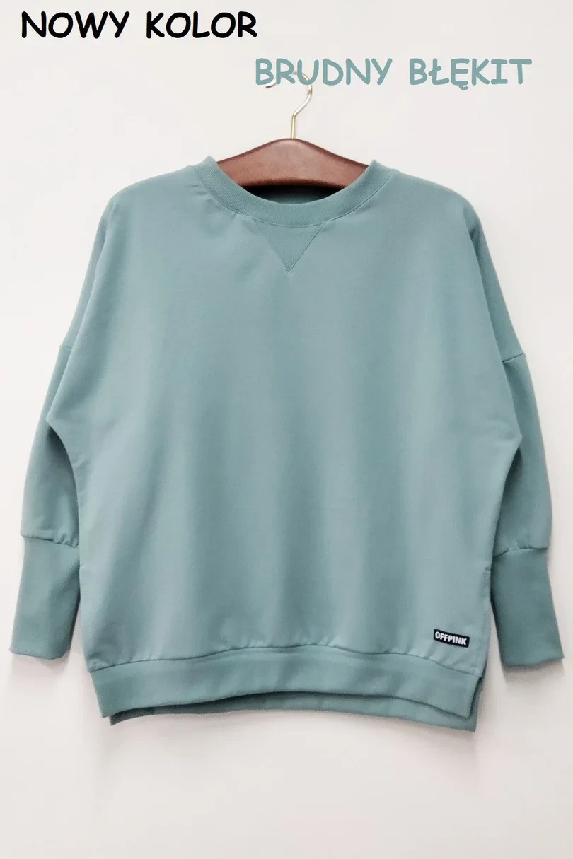 Mikina je typu "oversize" a má spuštěnou linii ramen.