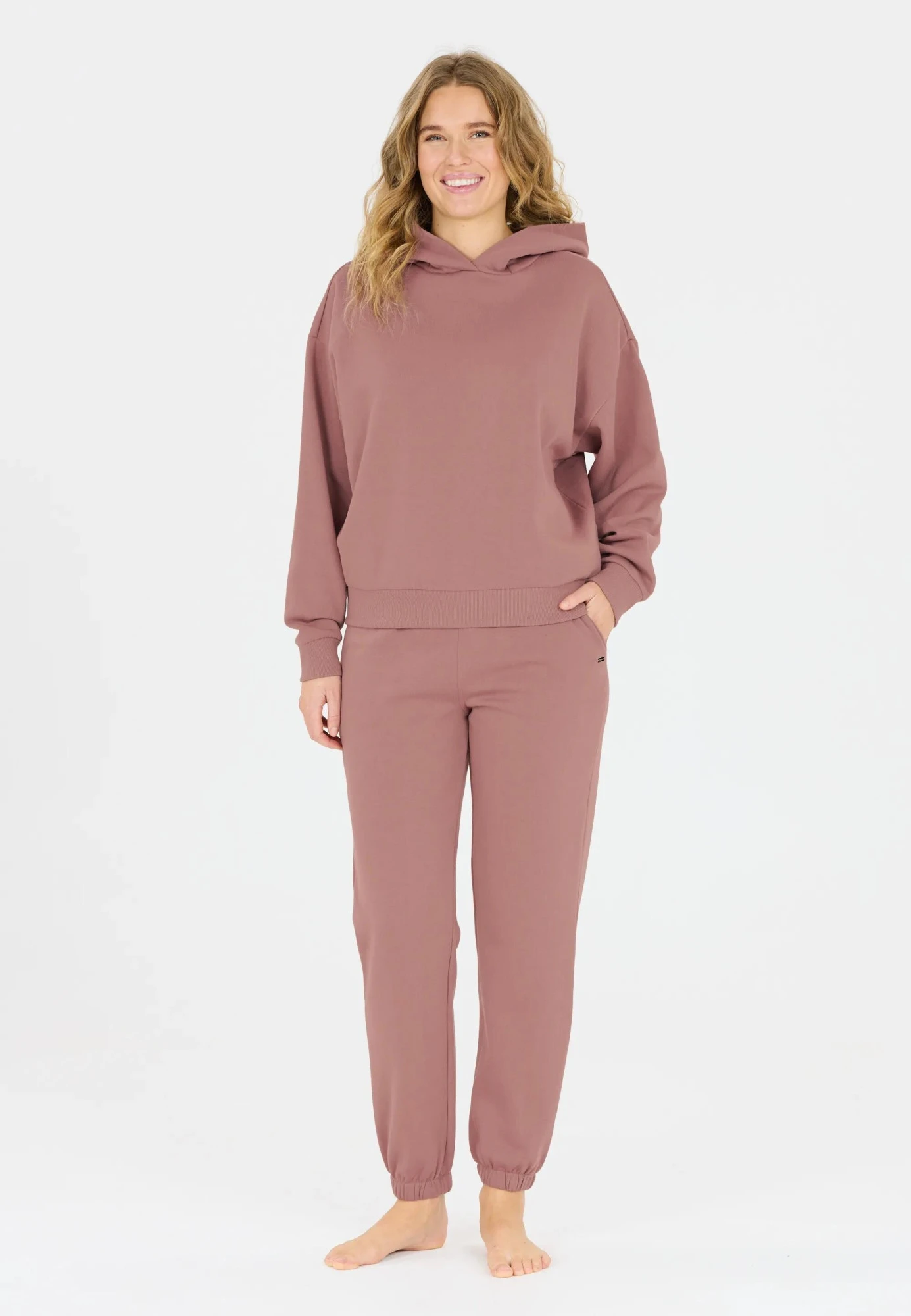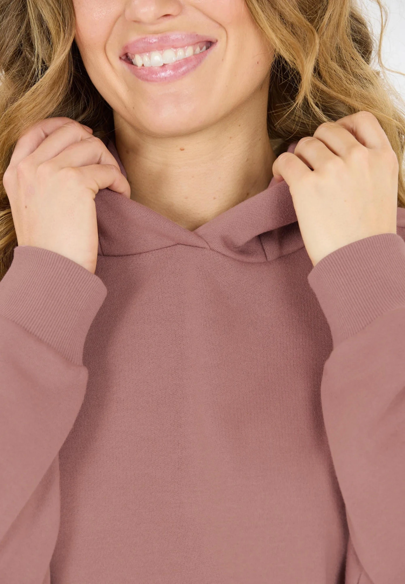 Kapuce bez šňůrek zachovává čistý a minimalistický vzhled, zatímco široké manžety na rukávech a spodním lemu drží tvar mikiny a chrání před chladem.