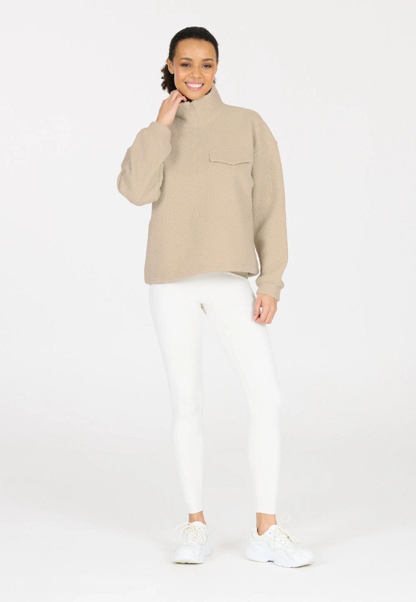 Praktický poloviční zip dodává moderní vzhled, usnadňuje oblékání a umožňuje regulovat odvětrávání.
