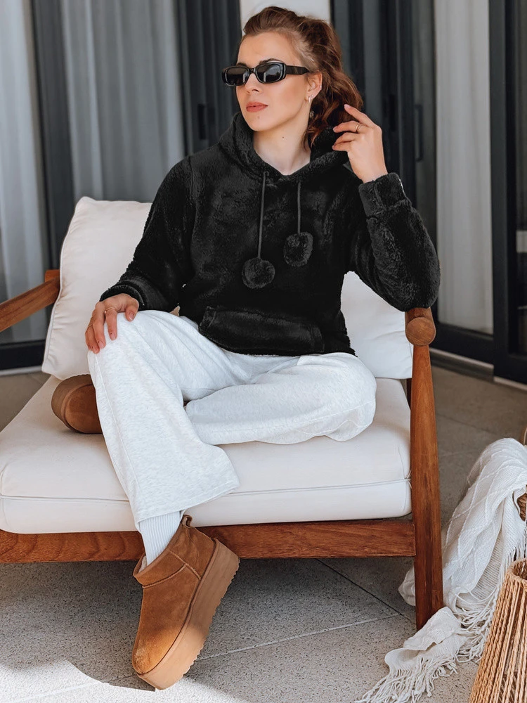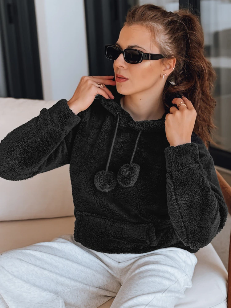 Tak, to ciepła bluza damska wykonana z grubego, pluszowego materiału typu „miś”. Idealna jako warstwa wierzchnia w chłodniejsze dni lub pod kurtkę zimową.