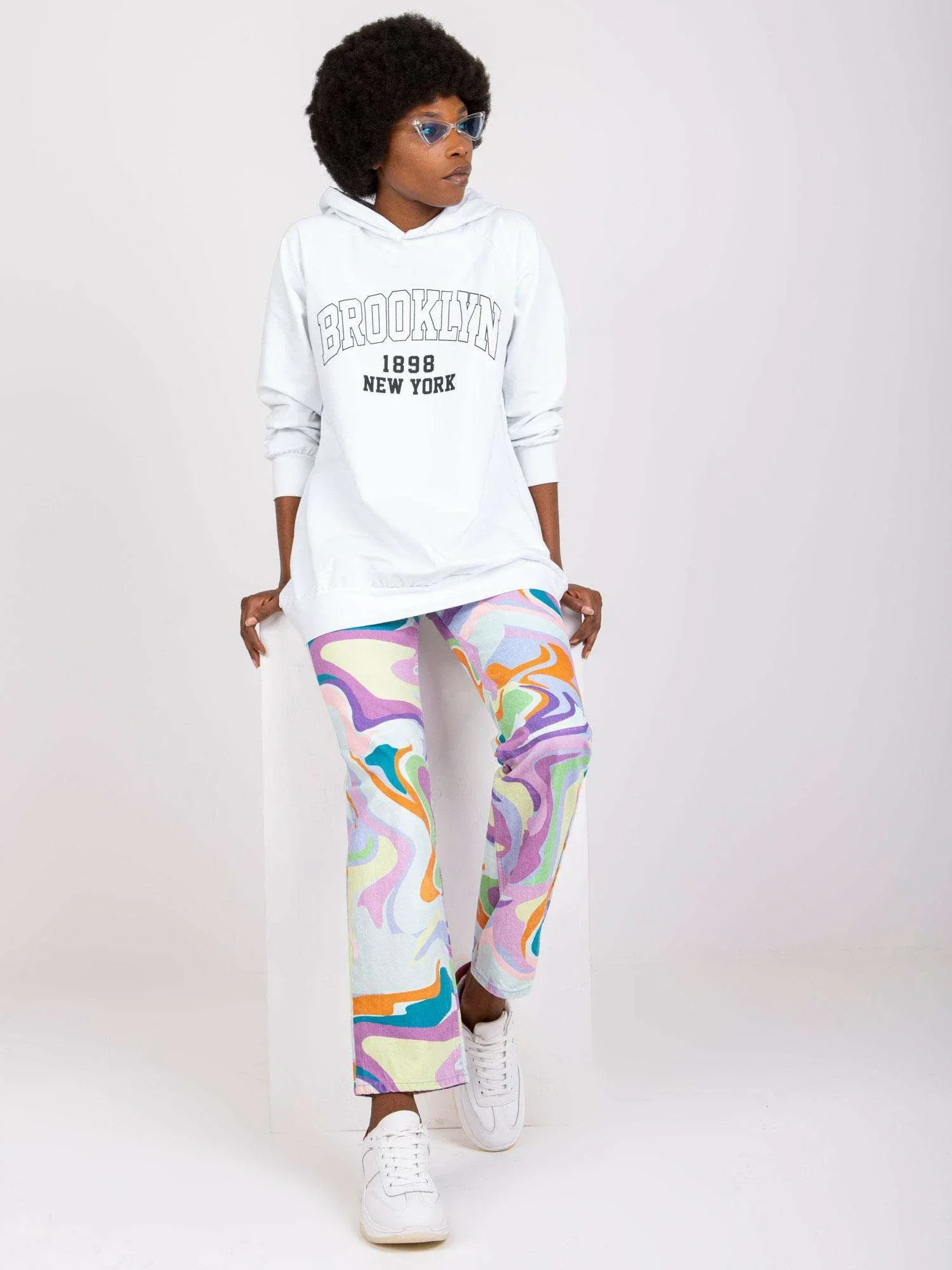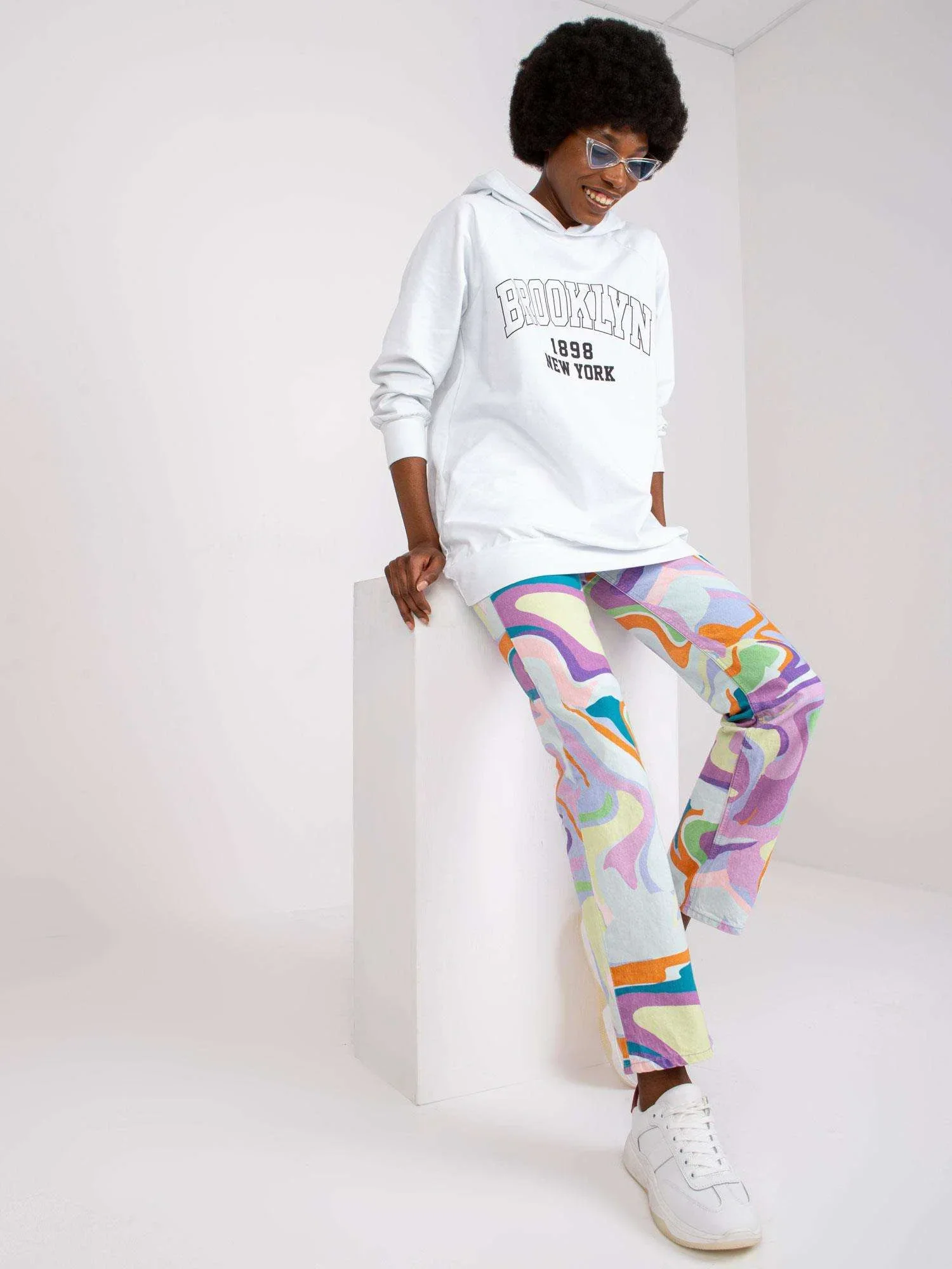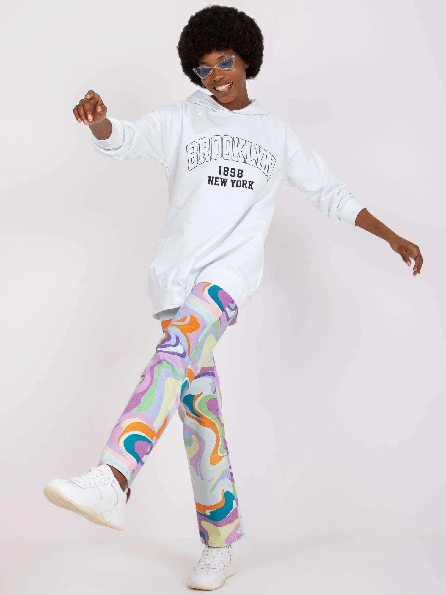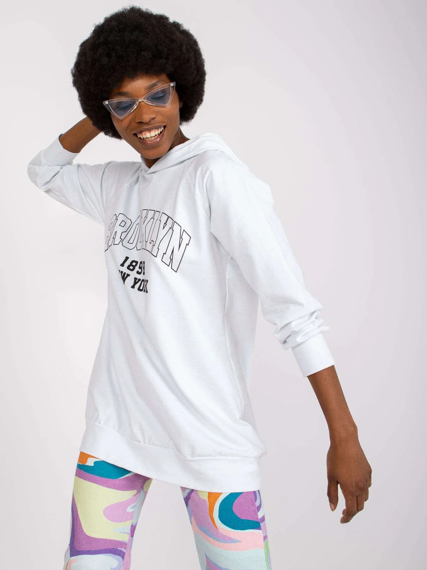 Modelka má na sobě jednu velikost Rozměry modelky: výška 178 cm, poprsí 82 cm, pas 63 cm, boky 93 cm.