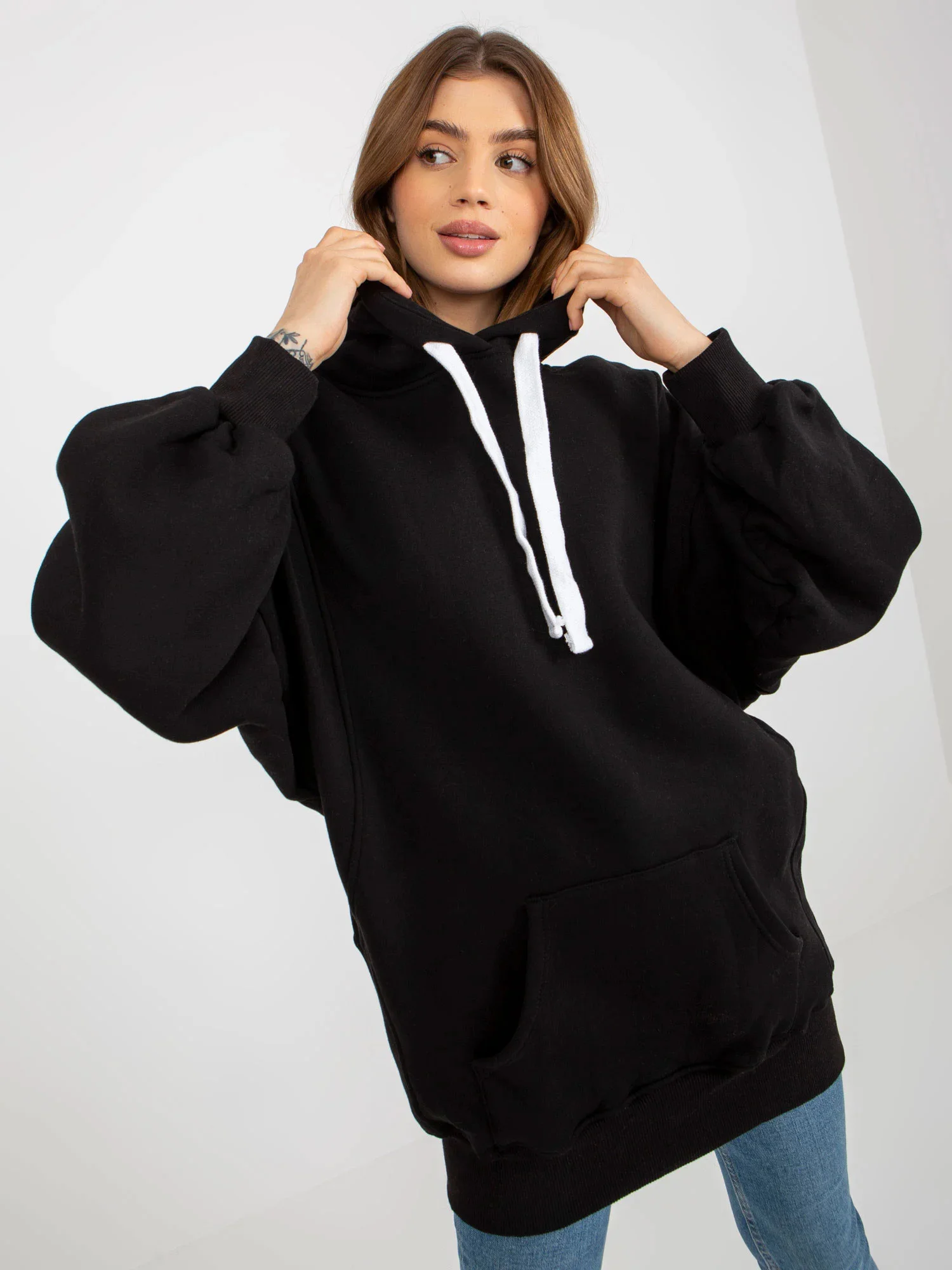 Černá mikina dlouhá basic s oversize střihem .