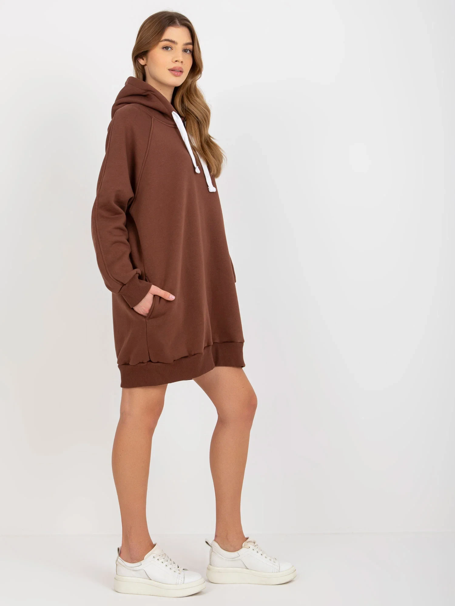 Hnědá dlouhá mikina basic s kapucí .