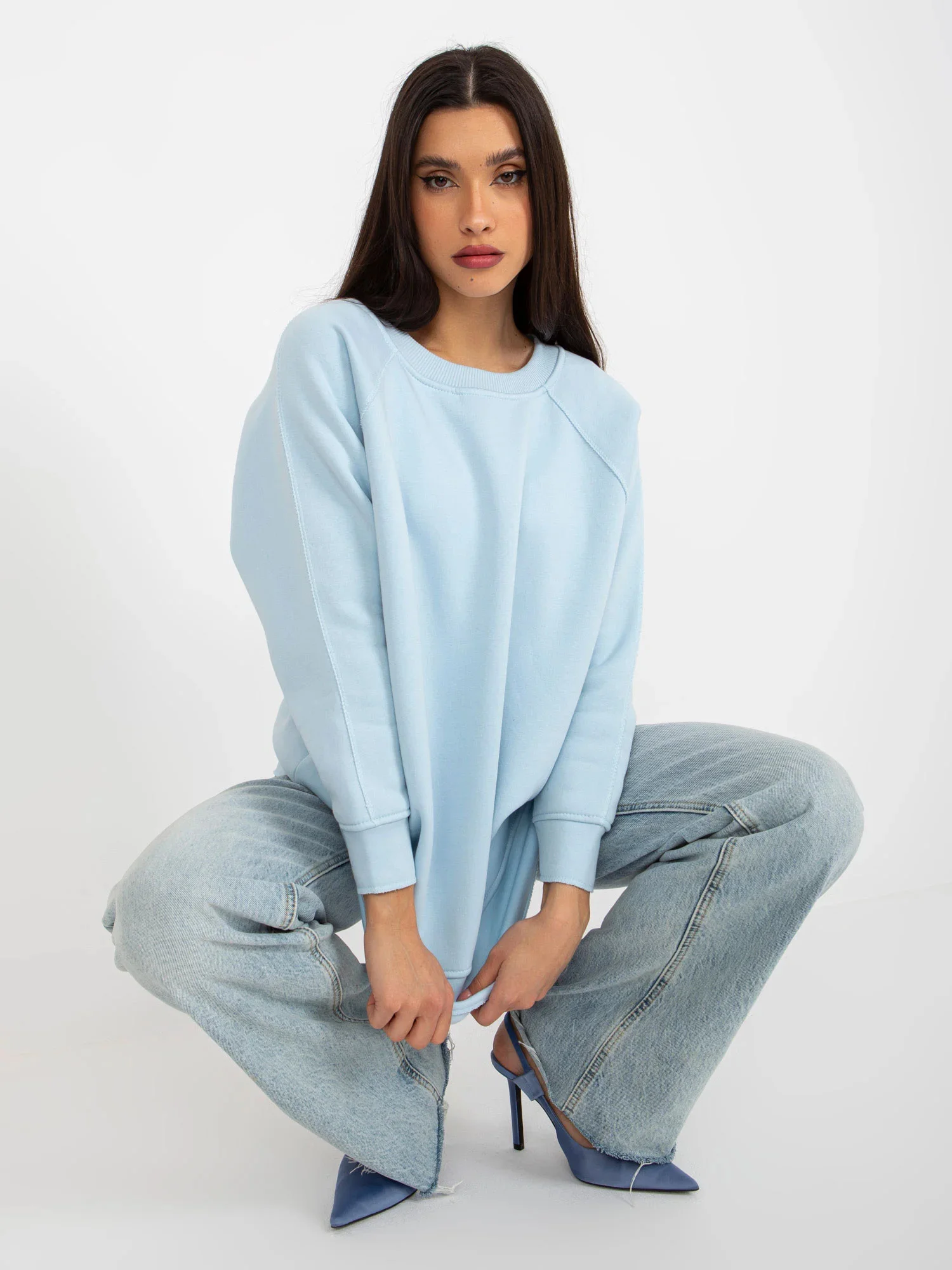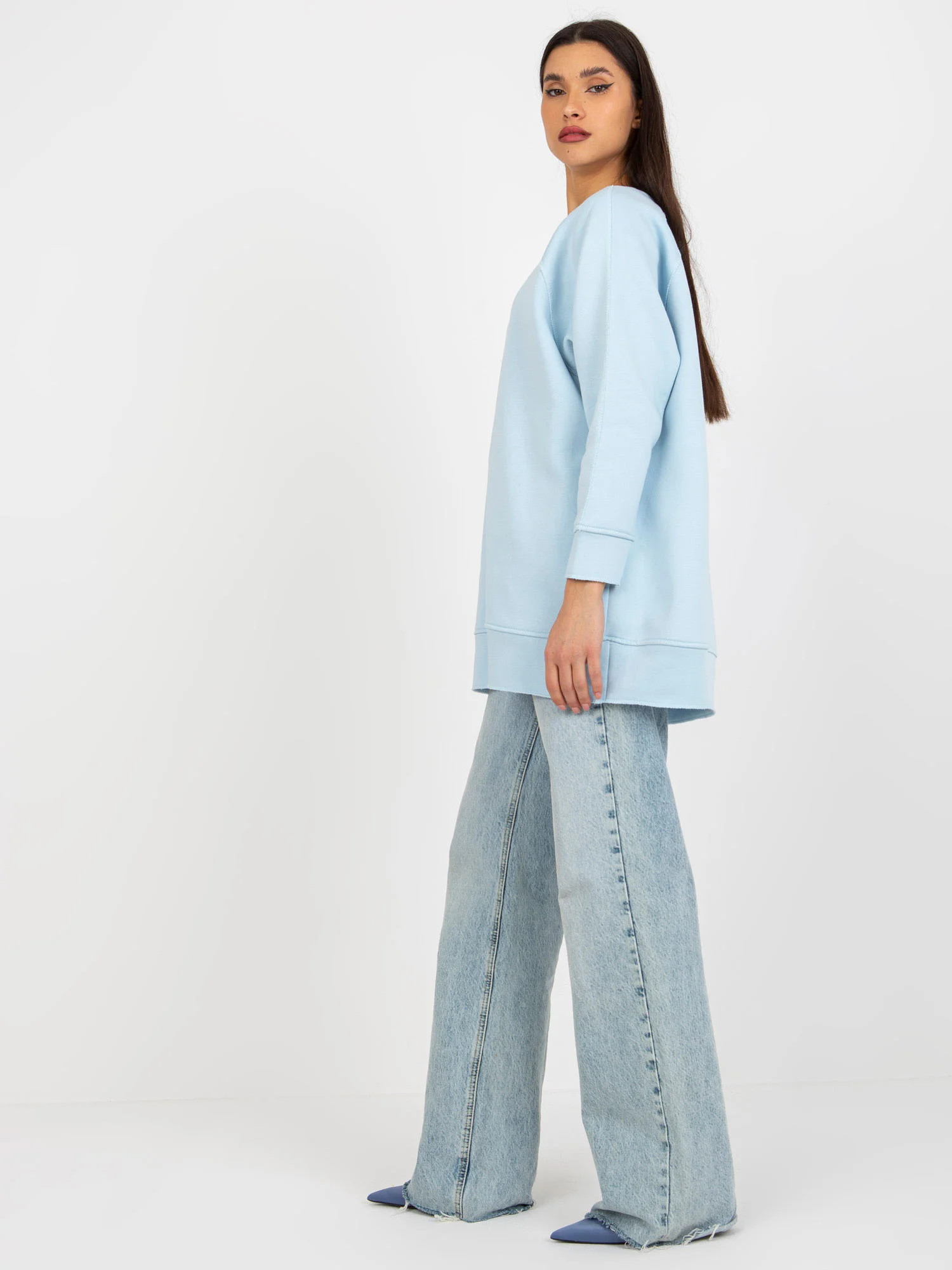 Světle modrá mikina basic bez kapuce .